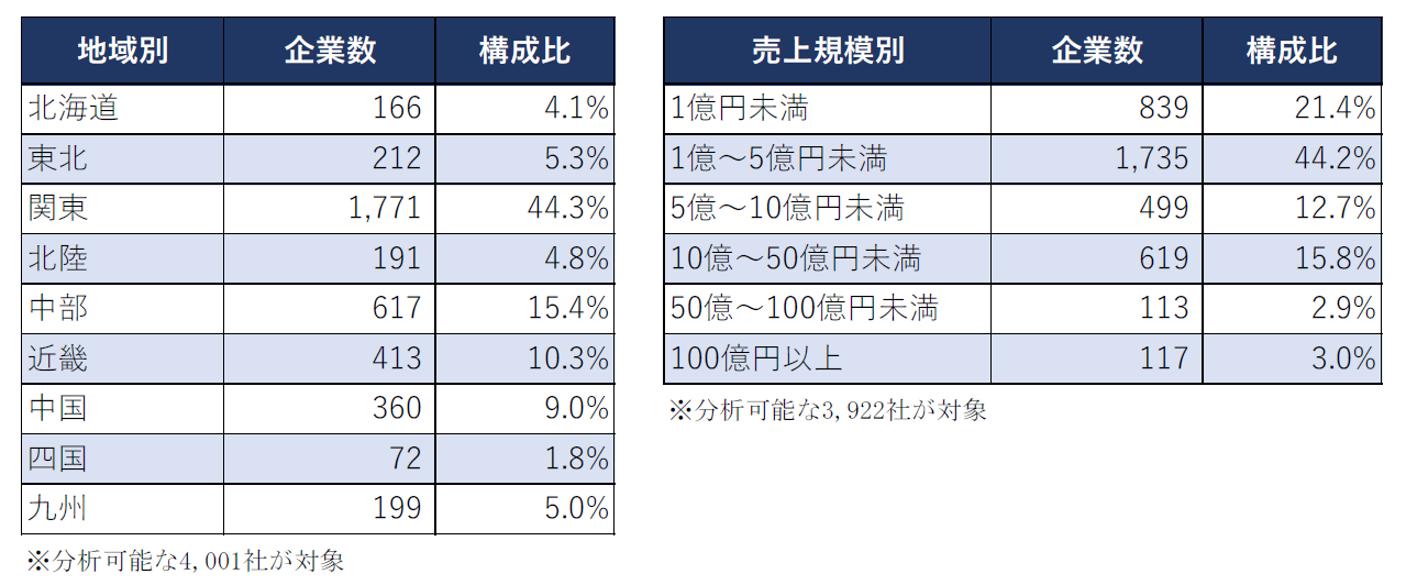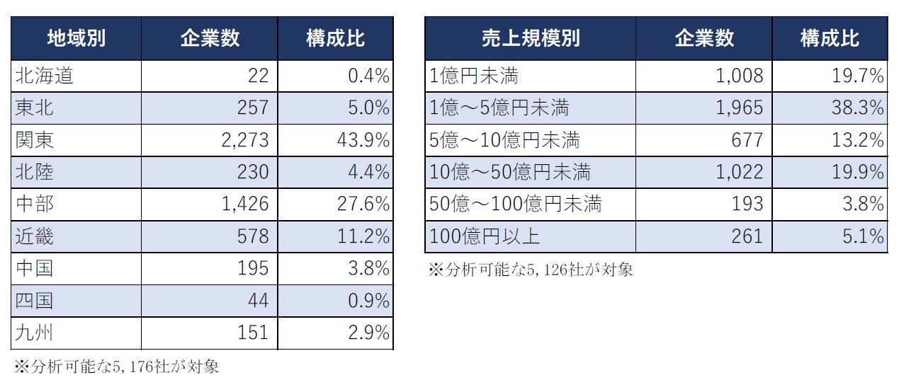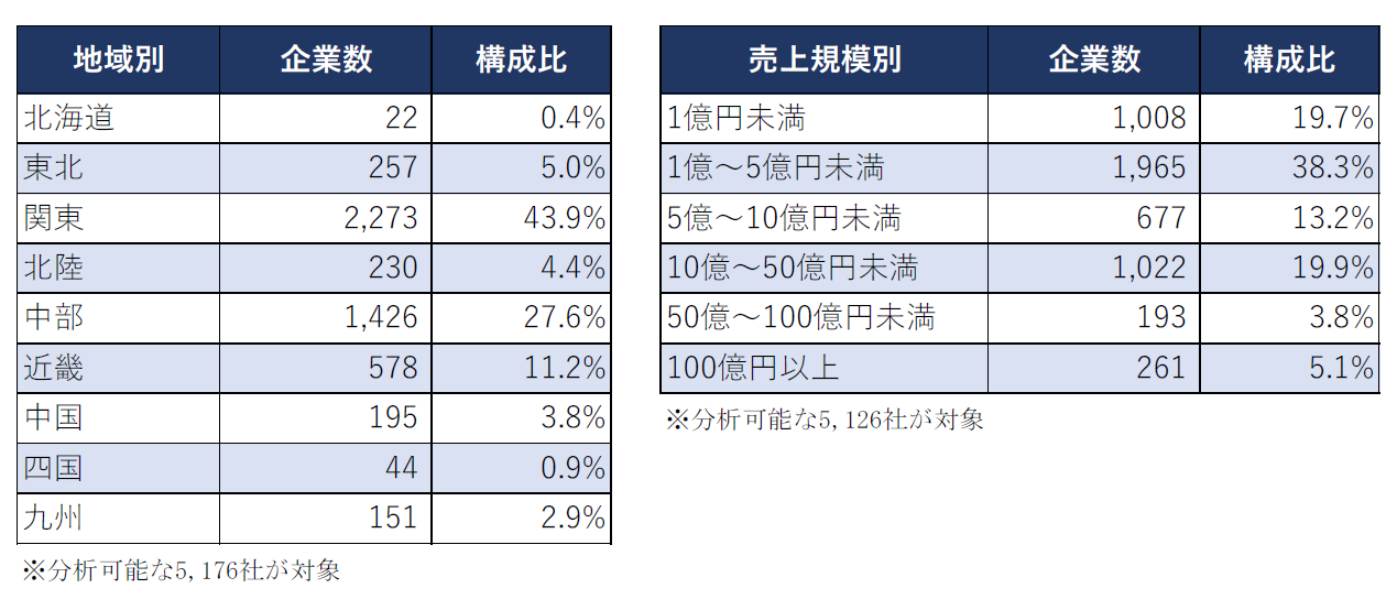 売上規模別では、「1億~5億円未満」(1,965社、構成比38.3%)が最も多かった。