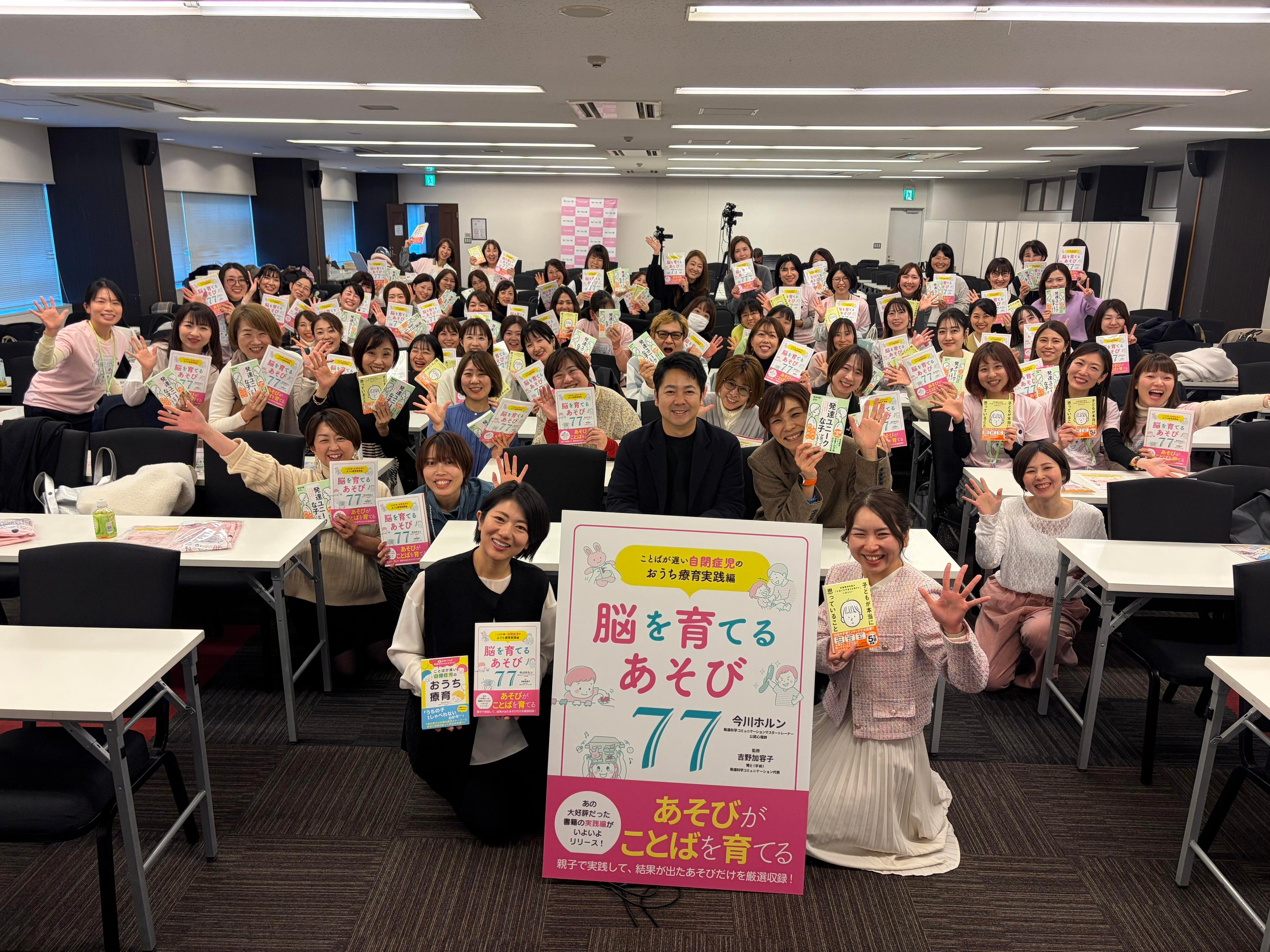 2026年1月31日(土)発達科学コミュニケーションマスタートレーナー今川ホルンは『ことばが遅い自閉症児のおうち療育実践編 脳を育てるあそび77』の出版記念として「発達が気になる子が ぐんぐん育つ♪ 子育てセミナー」を名古屋及びオンラインで開催。当日は会場・オンライン合わせて延べ200名を超える保護者が参加。本セミナーでは、「子どもを変えなければ」という焦りを抱えるのではなく、「まず安心できる関係をつくることが大切である」という視点を共有し、家庭で実践できる具体的な関わり方が提示されました。