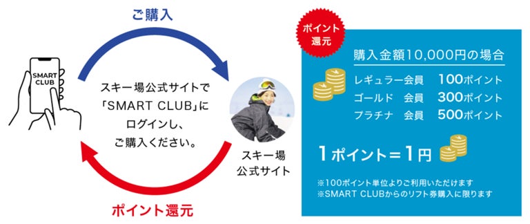 ■「SMART CLUB」のリフト券購入で次回以降使えるポイントを付与