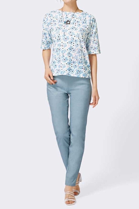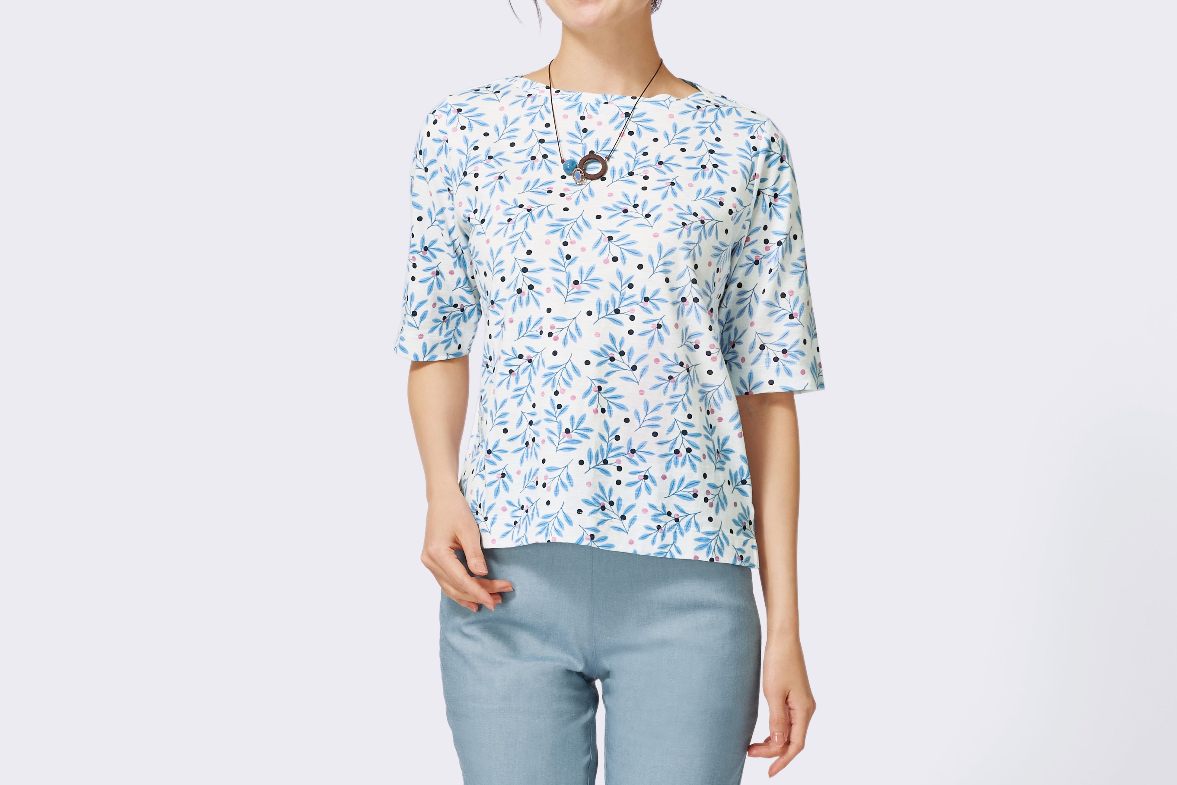 <商品名>リーフドット綿スラブ5分袖Tシャツ