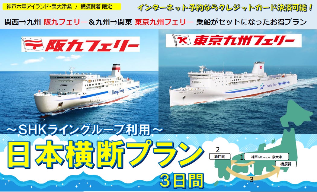 往路【阪九フェリー】復路【東京九州フェリー】利用の日本横断プランを発売いたしました♪