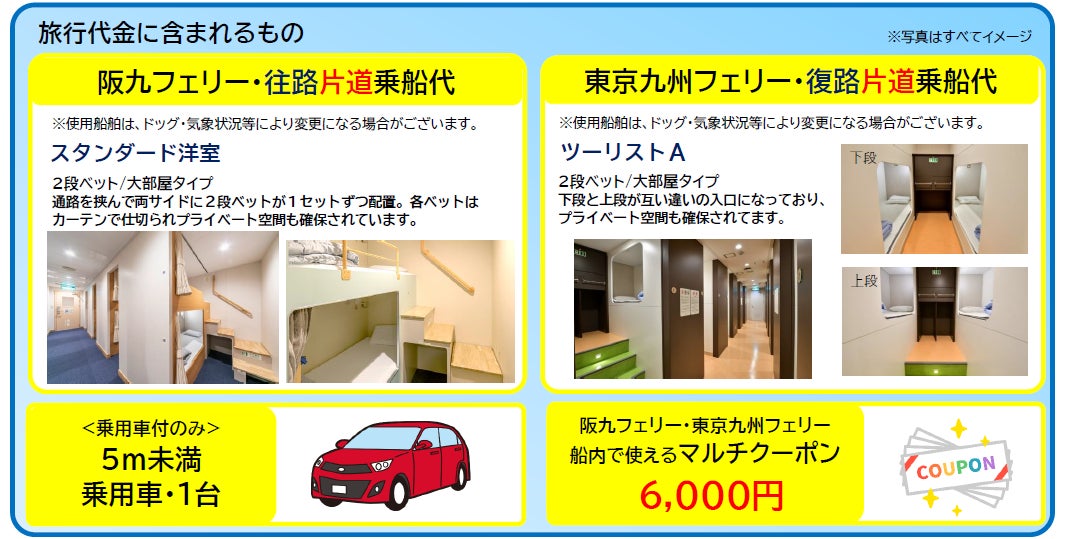 【日本横断】阪九フェリー&東京九州フェリー利用!関西発~九州旅~関東着の船旅プラン発売