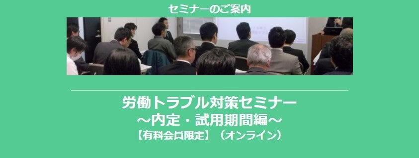 【12/6(火)より】【弁護士が解説!!】30分でわかる労働トラブル対策セミナー ~内定・試用期間編~を配信開始いたしました【オンライン】