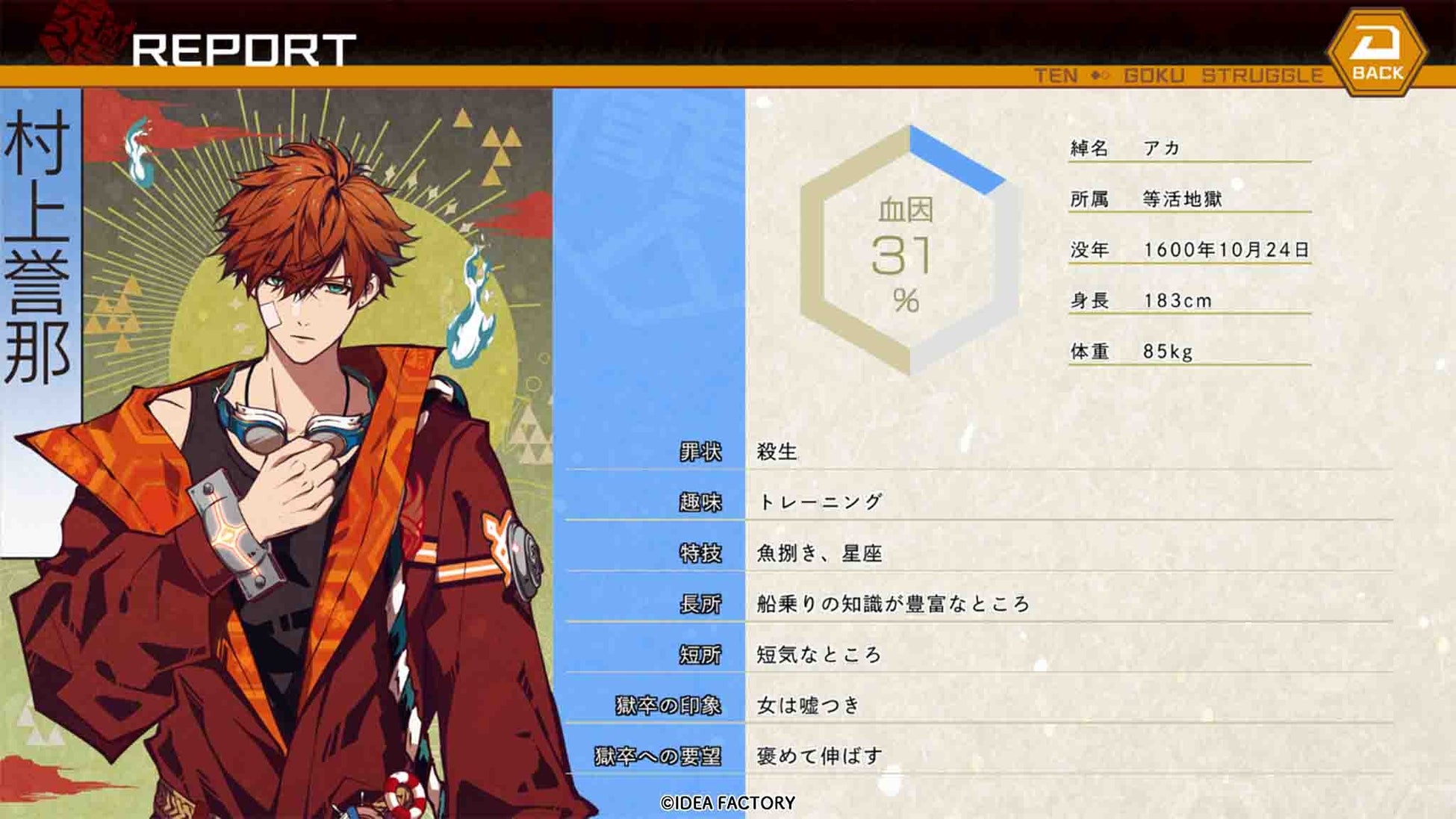 血因、趣味、特技など、攻略対象たちのプロフィールを見ることができる