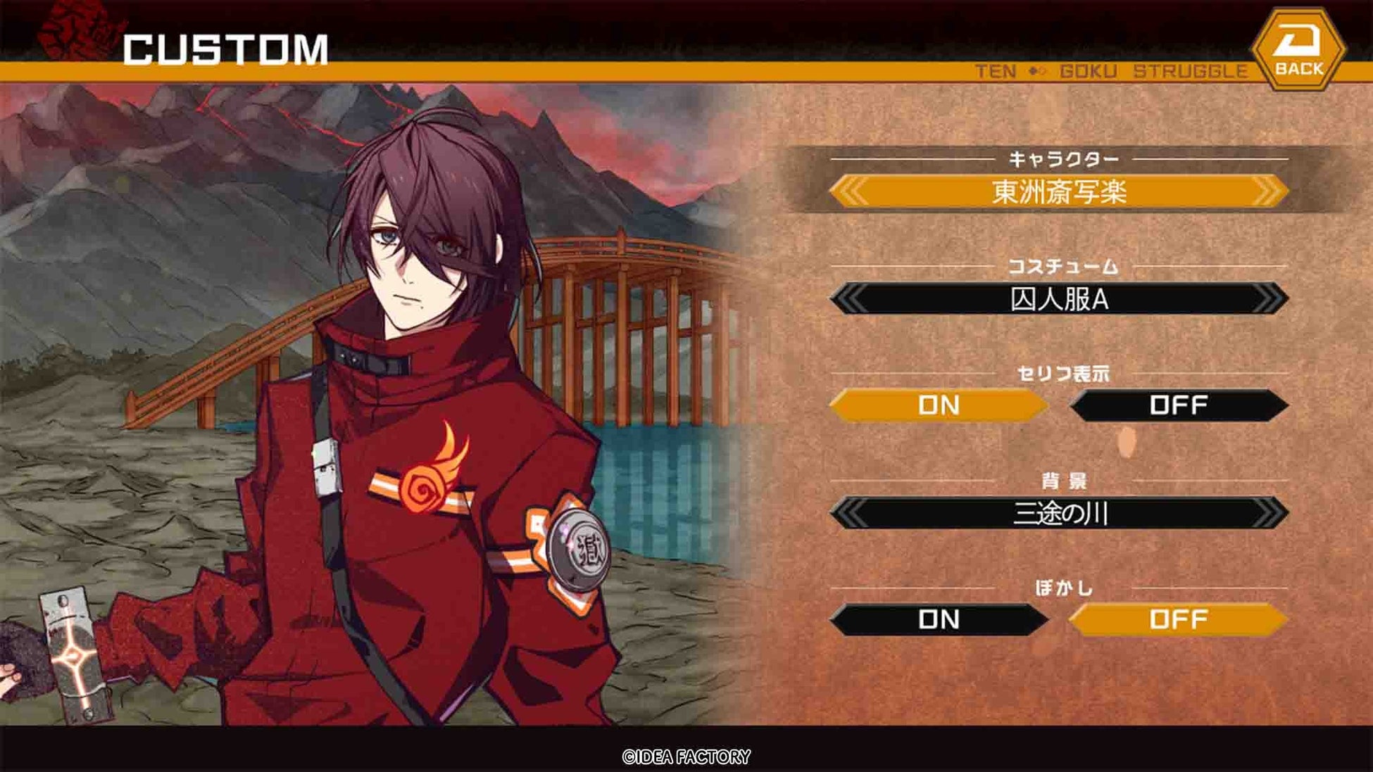 トップ画面に表示される【キャラクター】【コスチューム】【背景】を選ぶことができます。
