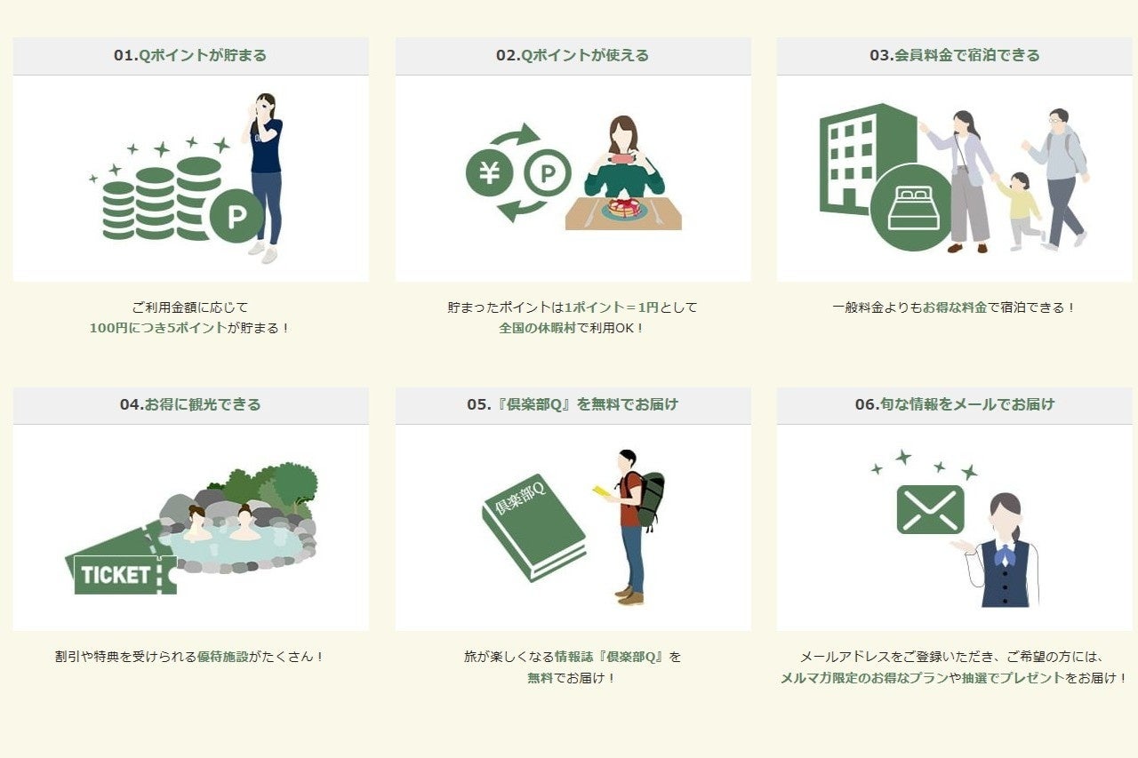 入会金・年会費全て無料の休暇村会員制度です。休暇村ご利用時に100円につき5ポイントが貯まり、次回以降1ポイント=1円としてお使いいただくことができます。また、一般価格よりもお得な料金でご宿泊いただける他、提携する周辺観光施設やお土産で割引や特典を受けることができます。