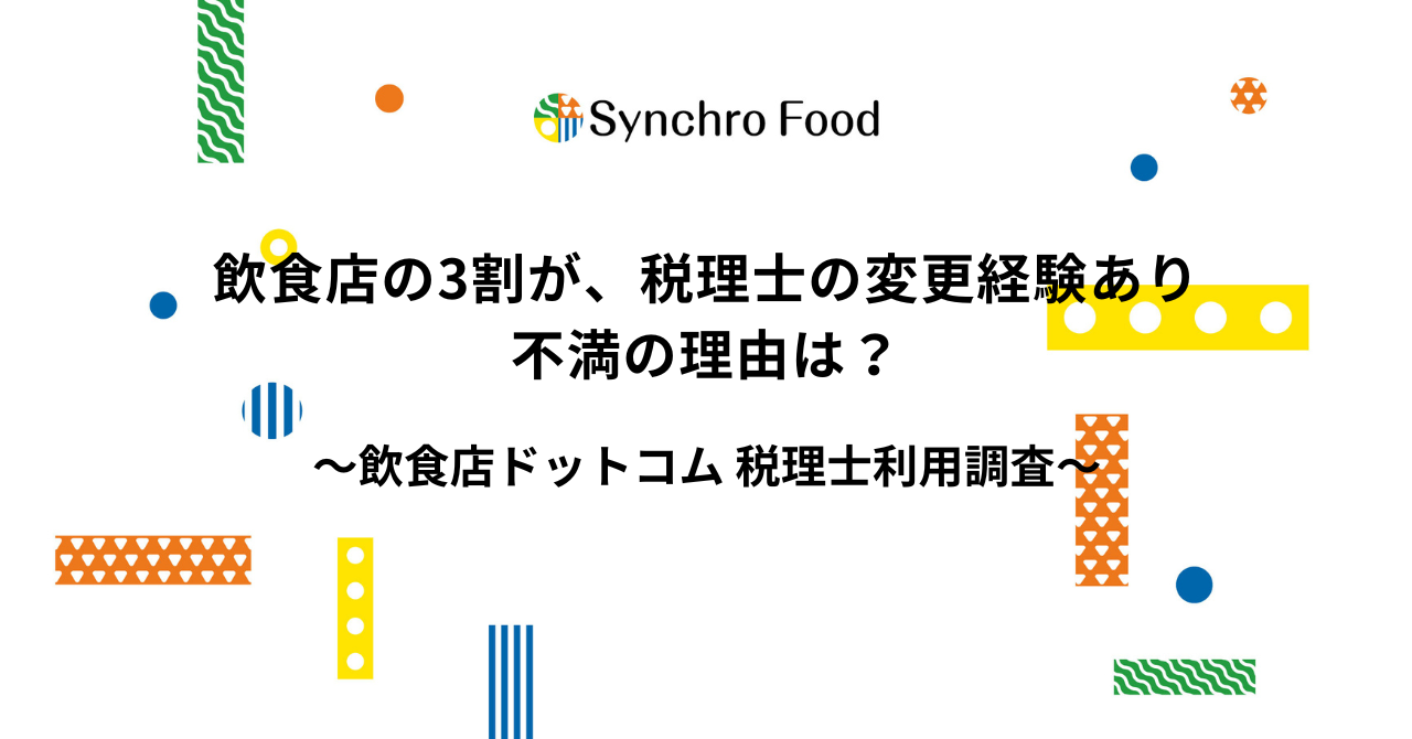 飲食店の出店・開業・運営に役立つサービスをワンストップで提供する「飲食店ドットコム」を運営する株式会社シンクロ・フード(本社:東京都渋谷区、代表取締役:藤代真一、東証プライム市場:3963)は、飲食店ドットコム会員を対象に、飲食店の税理士への依頼状況に関するアンケート調査を実施いたしました。