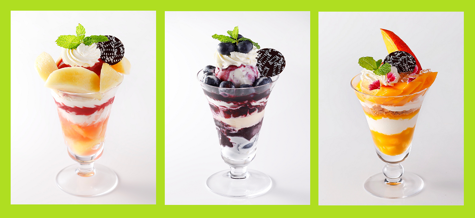 『和歌山県産 “あら川の桃”のパフェ』『山梨県明野産 ブルーベリーのパフェ』『宮崎県産 完熟マンゴーのパフェ』 の3種類のパフェを展開します。この時季ならではの産地直送のフルーツをふんだんに使用した、夏らしいフルーツパフェと共に、資生堂パーラーで涼やかなひとときをお過ごしください。