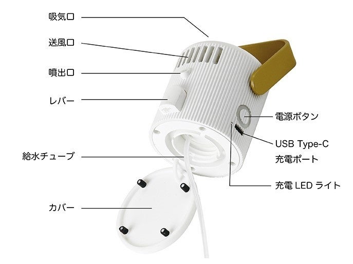 「ミストファン ボトルキャップ」は、ペットボトルに取り付けるだけで簡単に風とミストで涼むことができる扇風機です。ミストを浴びながら風が当たるとより涼しく感じる気化熱の原理を利用し、ミストと扇風機の相乗効果で暑い夏をより快適に涼むことができます。手軽に持ち運べるコンパクトなサイズで、夏場のスポーツ観戦やアウトドアにおすすめ。気軽に持ち歩ける携帯性も魅力です。
