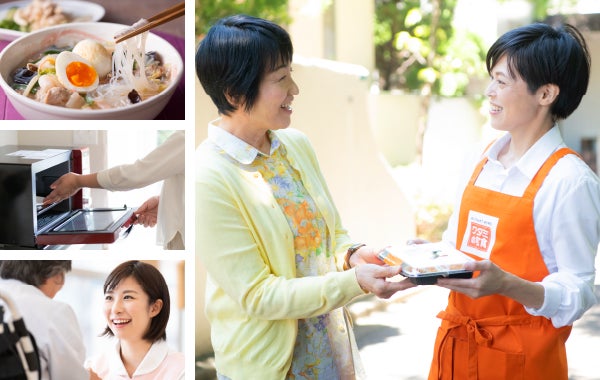 2008年に開始した高齢者向け食事宅配事業は、日替わりの食事が冷蔵で毎日届くというサービスで、これまで多くの人に受け入れられてきました。商品は飽きずに楽しんでいただけるよう季節の食材や行事を感じる料理を献立に取り入れるなど、専任の管理栄養士と料理人が味わい豊かでバランスのとれたメニューを開発しています。また、お弁当・お惣菜のお届けは、お客さまと同じ地域に住む「まごころスタッフ」が担っており、地域の高齢者の暮らしを「見守る」活動も実施しております。