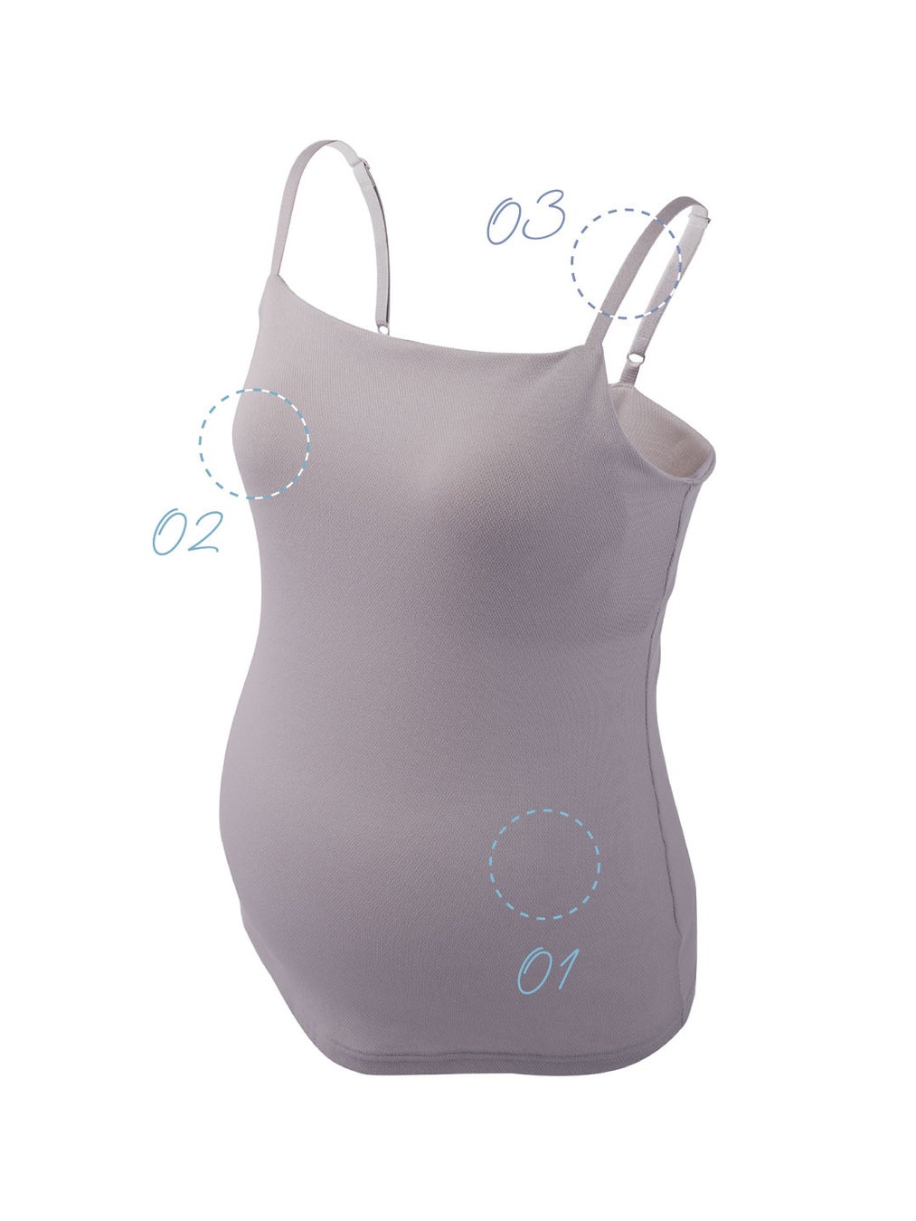 通気性のよい成型カップは、さらっと快適なだけでなく、バストを自然なシルエットにメイクします。背中部分のアンダーゴムをなくすことで、しめつけを感じにくくします。妊娠中や産後でブラジャーを着けたくないときも、さっと一枚着用するだけでラクにきれいにととのえます。