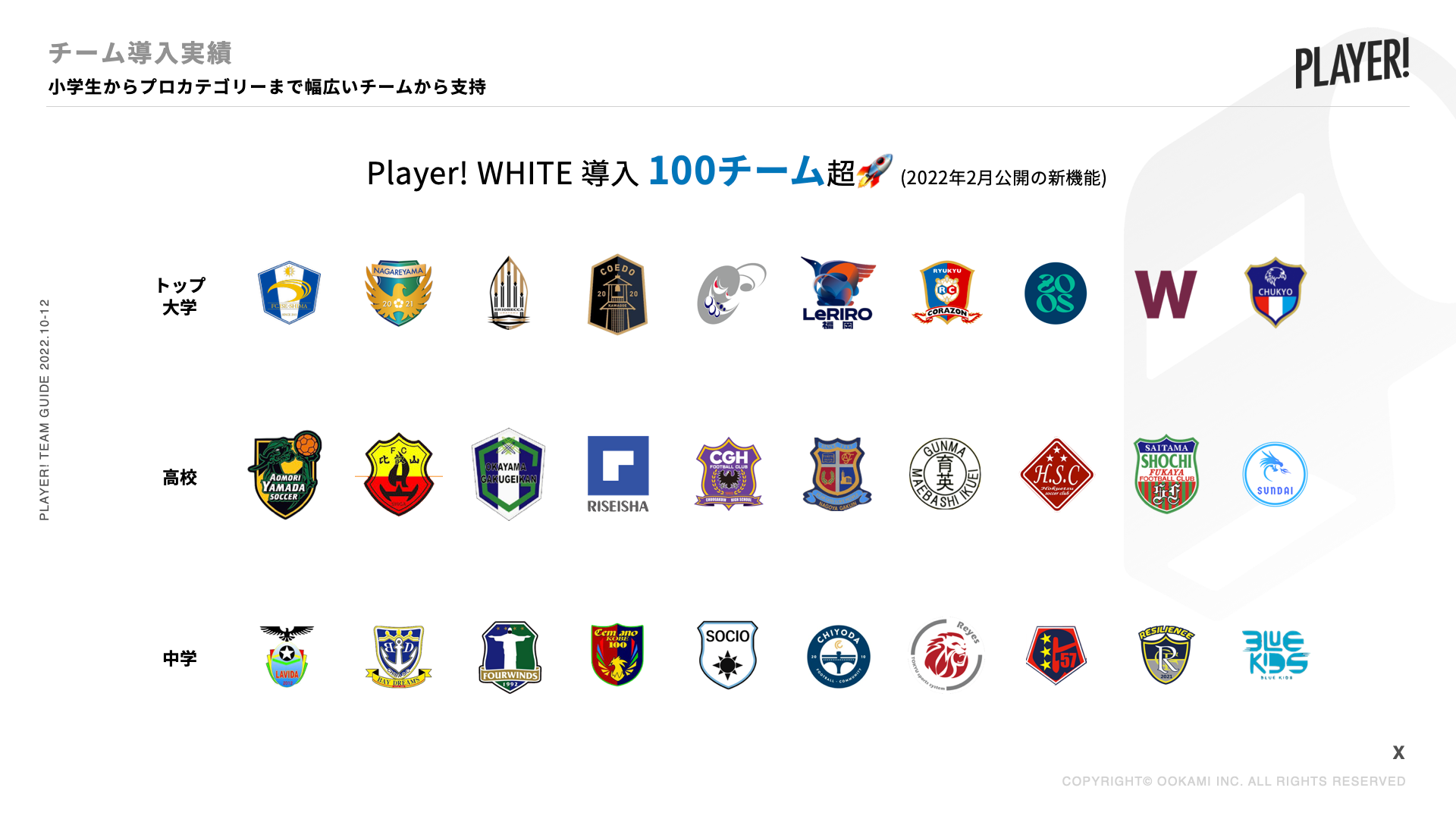 スポーツスタートアップ企業ookamiは、アプリで地元スポーツチームの収益化を支援する「Player! WHITE」の導入チームが100チームを突破した事をお知らせ致します。「Player! WHITE」では、チーム公式アプリを通じた試合情報や選手情報を起点にファンとの繋がりをさらに深め、長期的な収益化を支援します。また、今なら先着10チームを対象にご利用料特別割引キャンペーンを実施いたします。