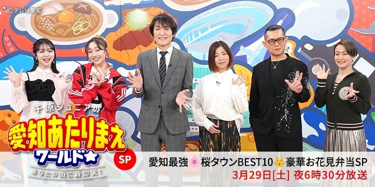 テレビ愛知は、『千原ジュニアの愛知あたりまえワールド☆〜あなたの街に新仰天!〜』【愛知最強“桜タウン”BEST10!!~豪華お花見弁当SP~】を2025年3月29日(土)夜6時30分から放送します。