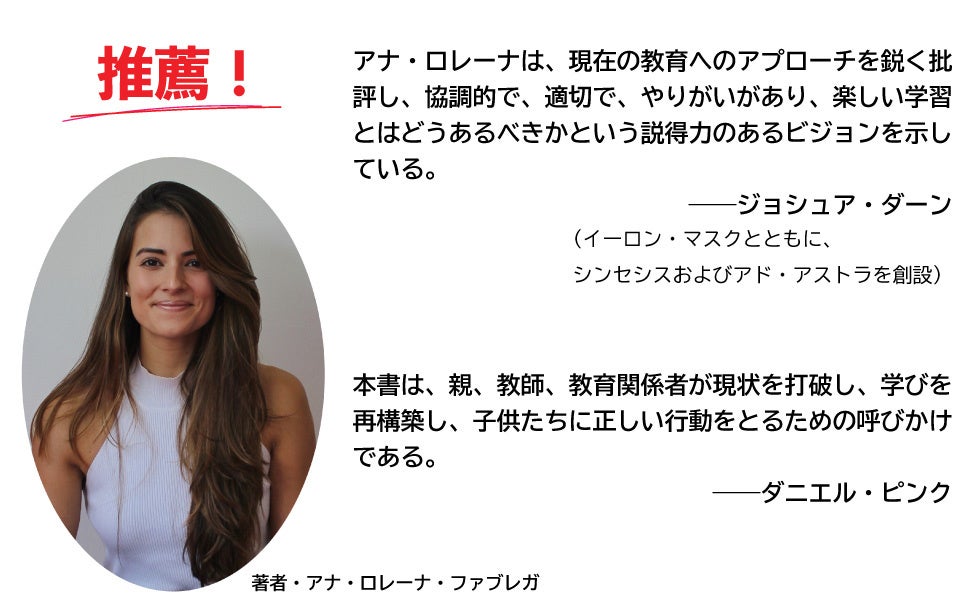 幼少期は7つの国の10の学校に通って育った。その経験をもとに、ニューヨーク大学で児童教育と特別教育、心理学の学位を取得し、ニューヨーク、ボストン、パナマで小学校の教師を務めた。現在、アナ・ロレーナは生徒たちから「ミズ・ファブ」と呼ばれ、オルタナティブ教育の可能性について20万人以上の読者に向けてオンラインで執筆している。