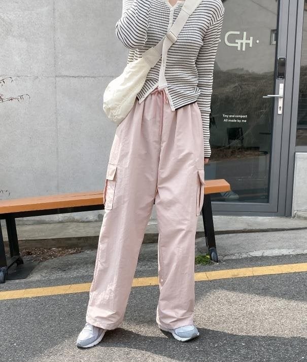 ウエストゴムと適度なゆる幅デザインで動きやすく楽な着心地。裾と大きめのカーゴポケットに施されたドロスト仕様がよりカジュアルに。