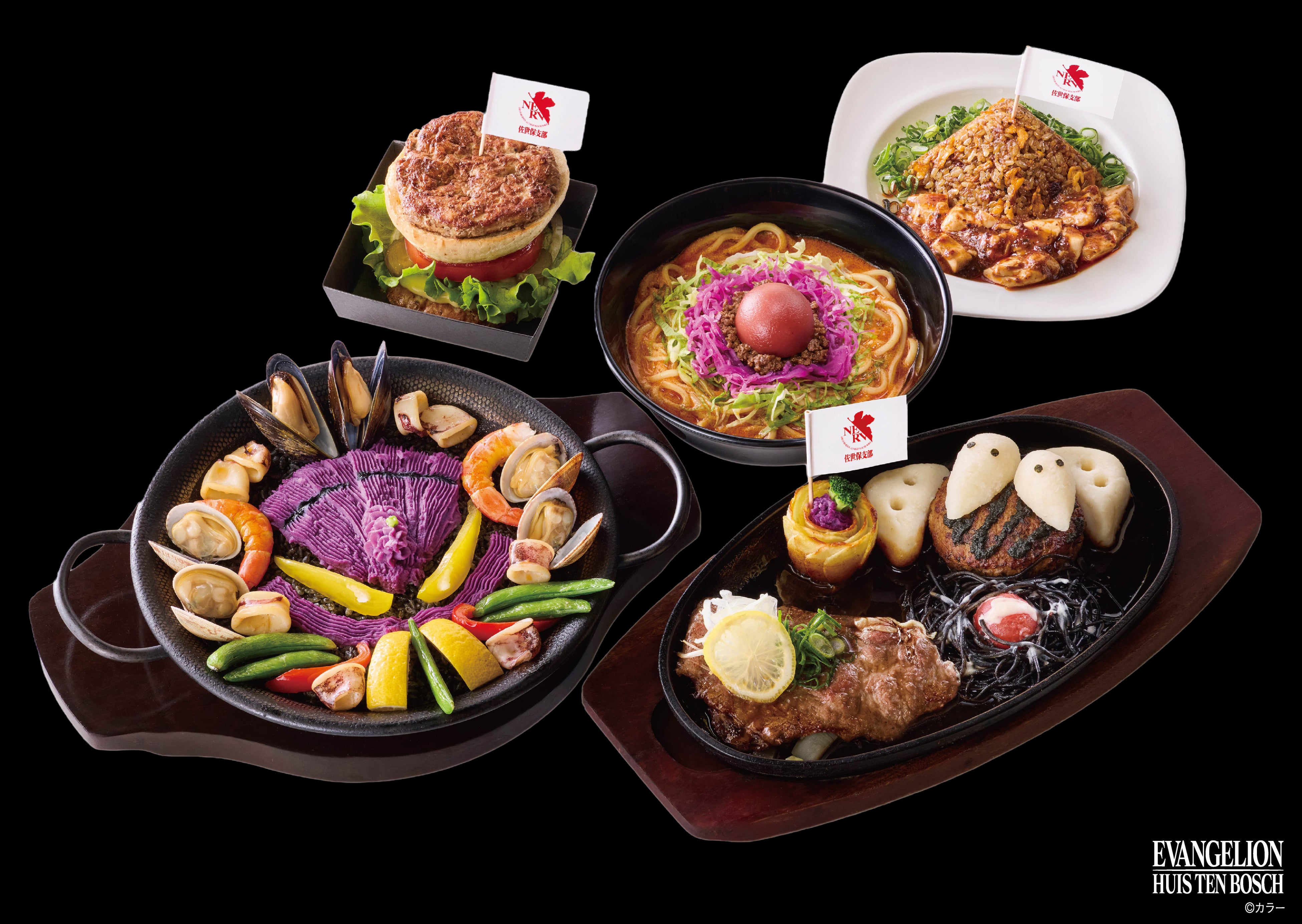 佐世保名物を取り入れた完全オリジナルの『エヴァンゲリオン』のコラボグルメが登場!作品の世界観をモチーフに、こだわり抜いて開発した多彩なメニューを、「迎撃要塞都市 ハウステンボス」の中で五感とともに堪能できる、唯一無二の味わいとしてお楽しみいただけます。