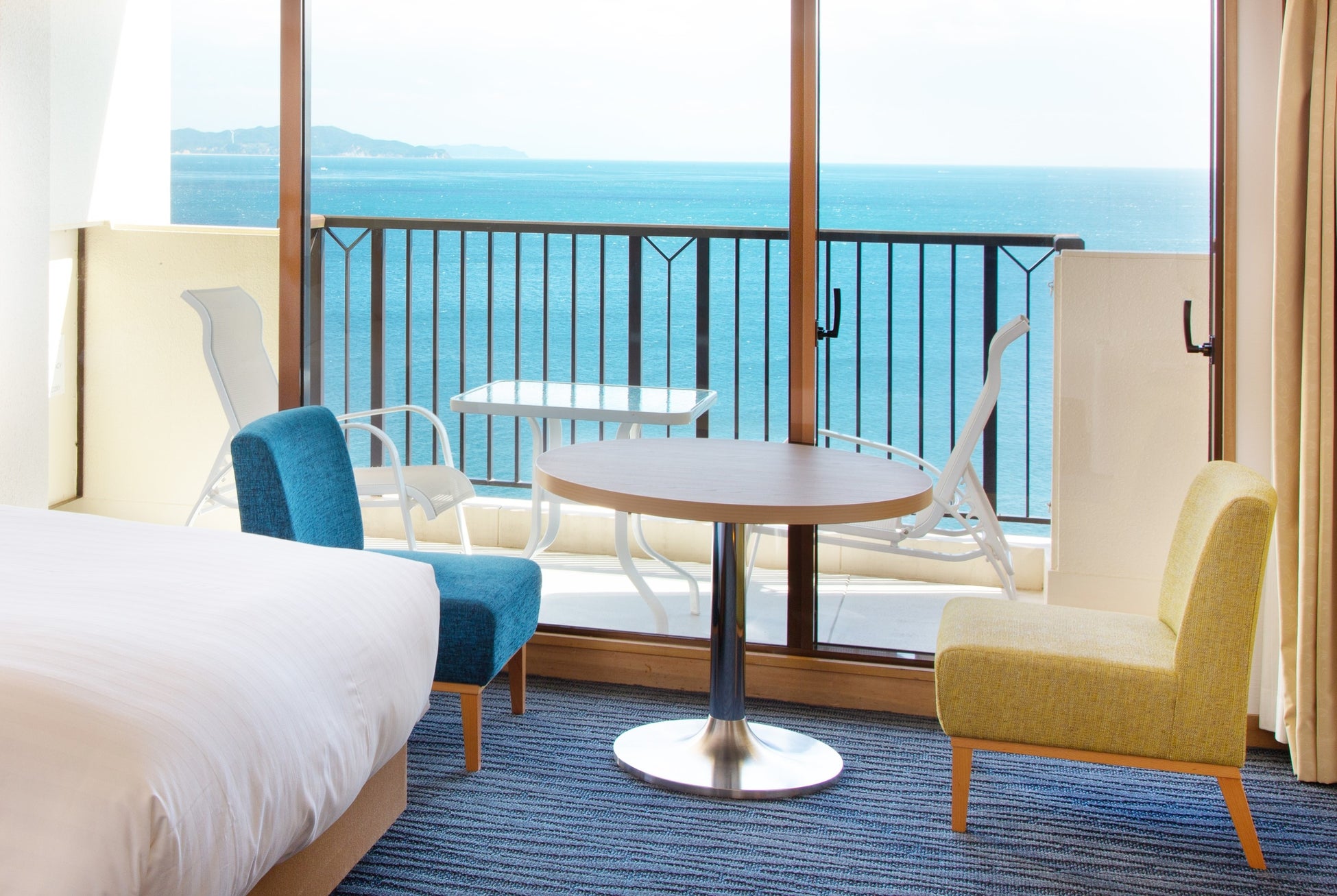 海に昇る朝日、満月とその前後には月が海に反射して描く月光の道「ムーンロード」を客室や天然温泉から一望します。海を見晴らす洋室、徳島の匠による「阿波藍ルーム」など旅のスタイルで選べる客室は15タイプ。