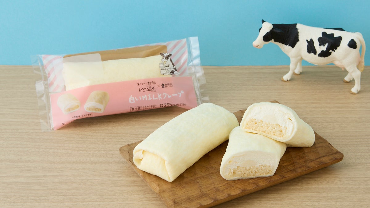 北海道産の生クリームを使ったホイップクリーム、練乳ソース、スポンジをくちどけの良い白いクレープ生地で包んだクリームが主役のクレープ。