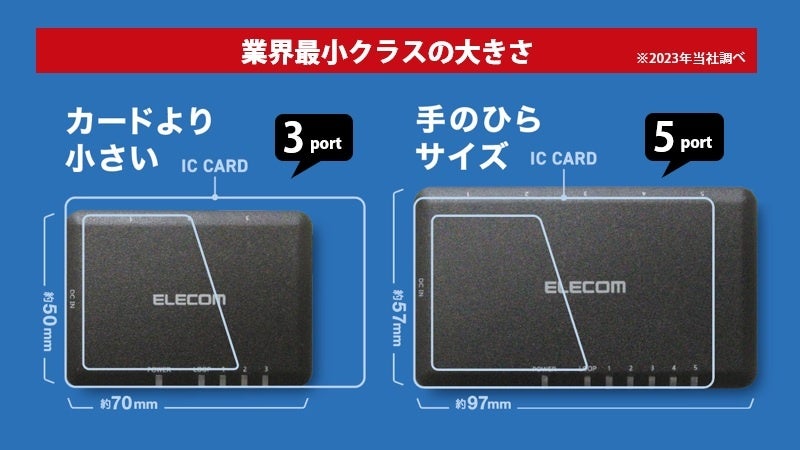 ICカードより小さい手のひらサイズ!有線LANポートを増設できるギガビット対応のスイッチングハブ 3ポートと5ポートを新発売