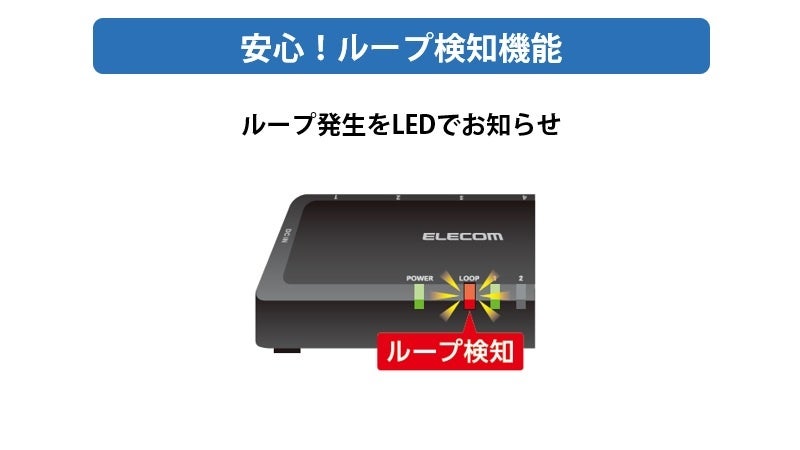 ループ検知機能を搭載しています。LEDランプの点滅によりネットワークループ発生をお知らせし、ネットワーク障害の解消を促します。