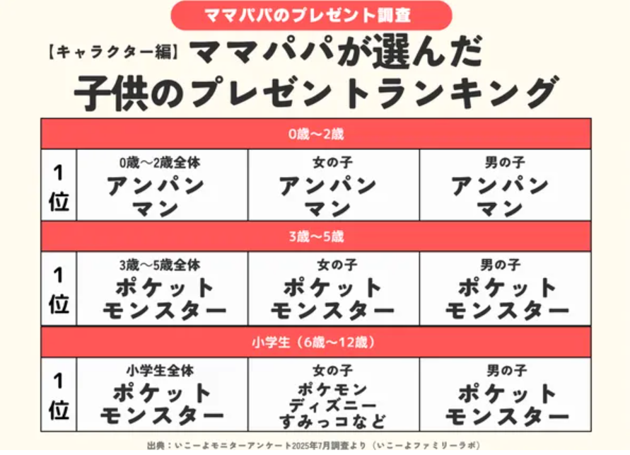 ▶【0歳~12歳全年齢】2025年子供の年齢別プレゼントランキング ママパパ421人が選んだ