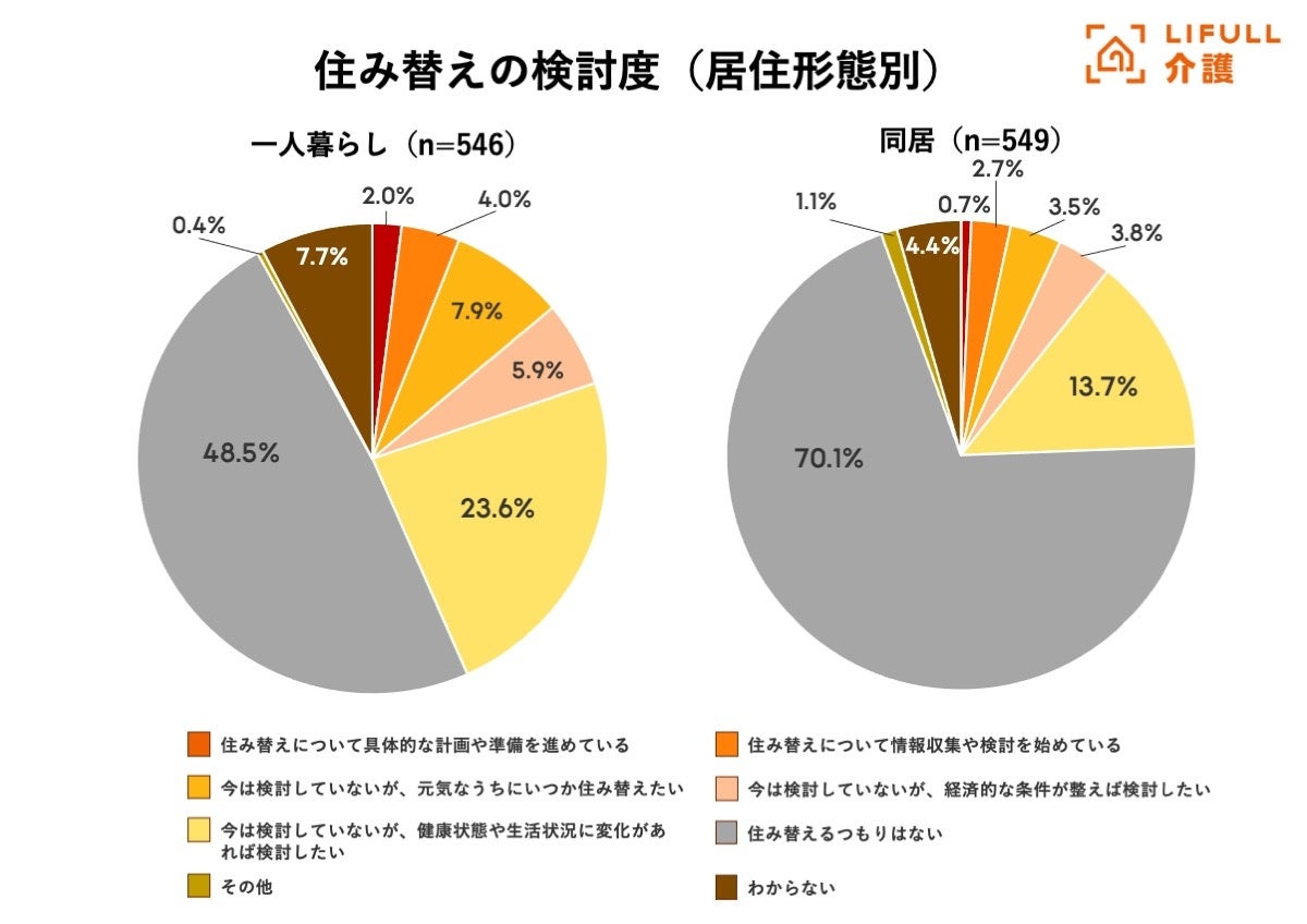 事業を通して社会課題解決に取り組む株式会社LIFULLのグループ会社である株式会社LIFULL senior(代表取締役:泉 雅人)が運営する業界最大級の老人ホーム・介護施設検索サイト「LIFULL 介護」は、65歳以上の、一人暮らしの方546名、家族や親族と同居の方549名を対象に、住み替えに関する意識調査を実施し、その結果を発表します。