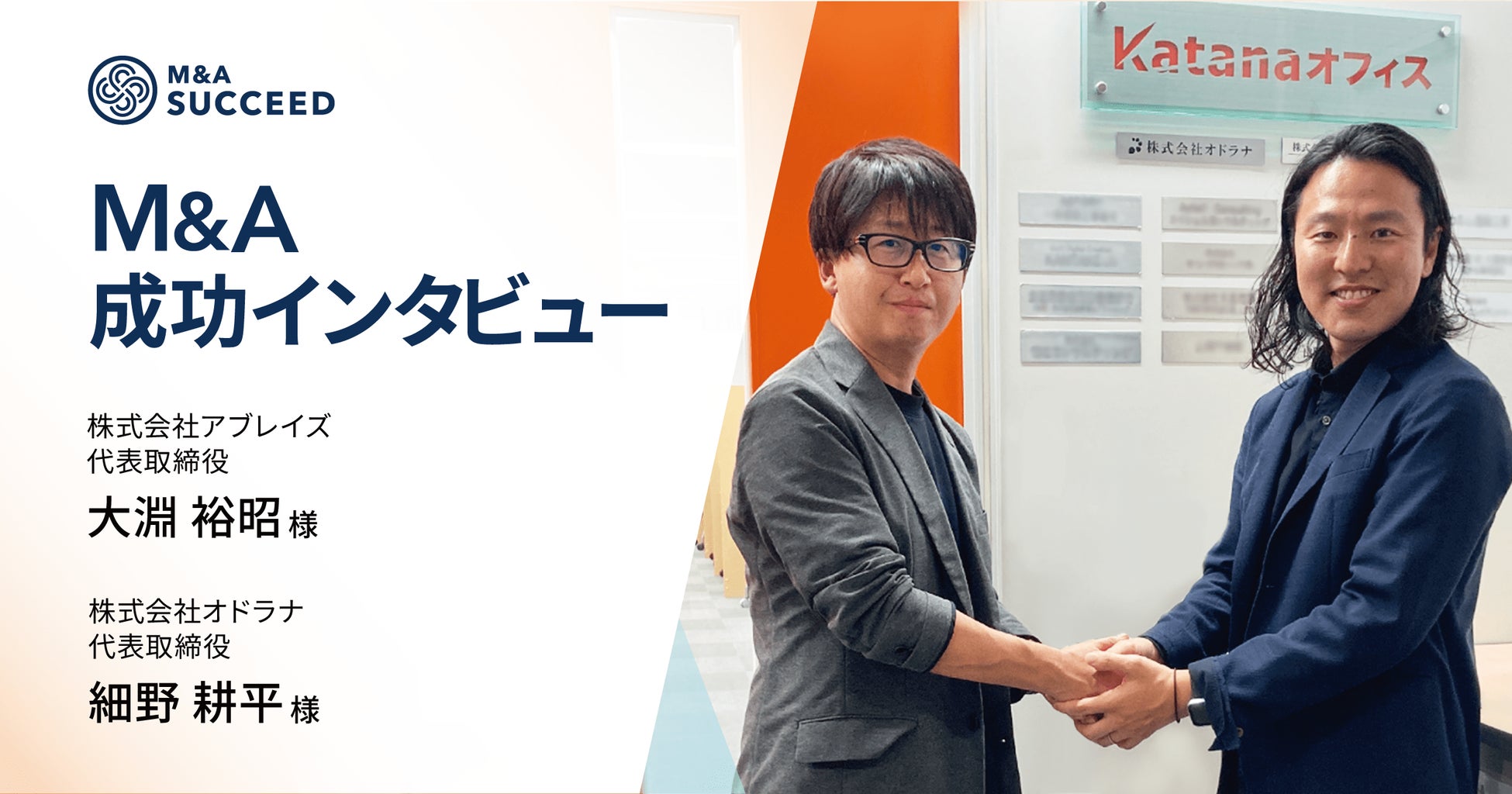 Visionalグループの株式会社M&Aサクシード(所在地:東京都渋谷区/代表取締役社長:金 蓮実)が運営する法人限定M&Aプラットフォーム「M&Aサクシード」(https://ma-succeed.jp/)は、M&Aサクシード経由で、シェアオフィス事業を主とする株式会社オドラナが、介護サービス業の株式会社アブレイズに「直営シェアオフィス事業」を事業譲渡したことをお知らせします。そこで本日、二社のインタビューを公開しました。