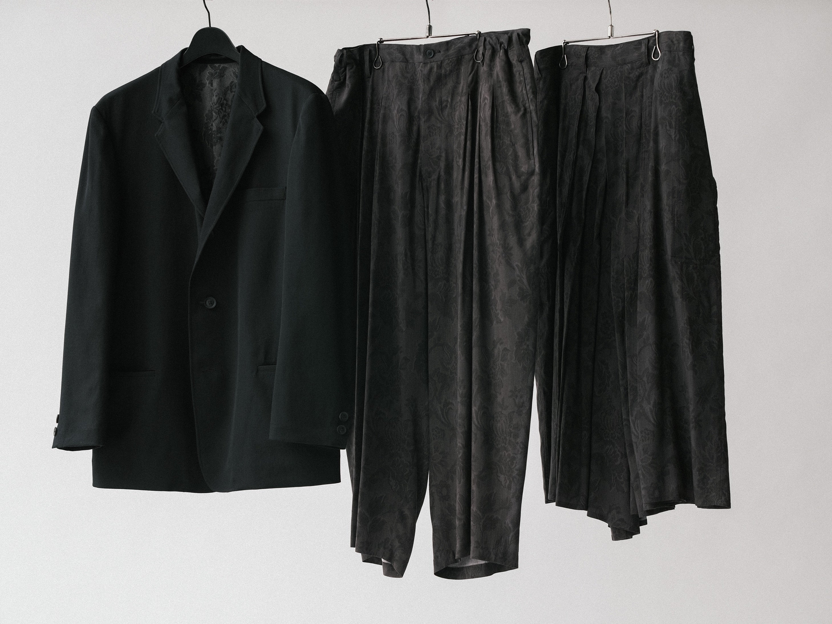 袴パンツは伝統的な日本の袴を基にデザインされ、独自の分量感とシルエットで、ゴブラン柄と組み合わせることにより独特の存在感を放つアイテムとなっています。