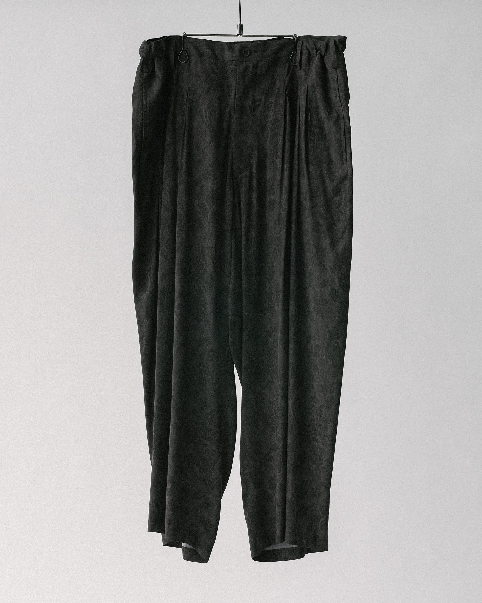 パンツは、レーヨン素材に花柄のゴブランプリントを施した12本タックパンツ、袴パンツの2型をご用意しております。