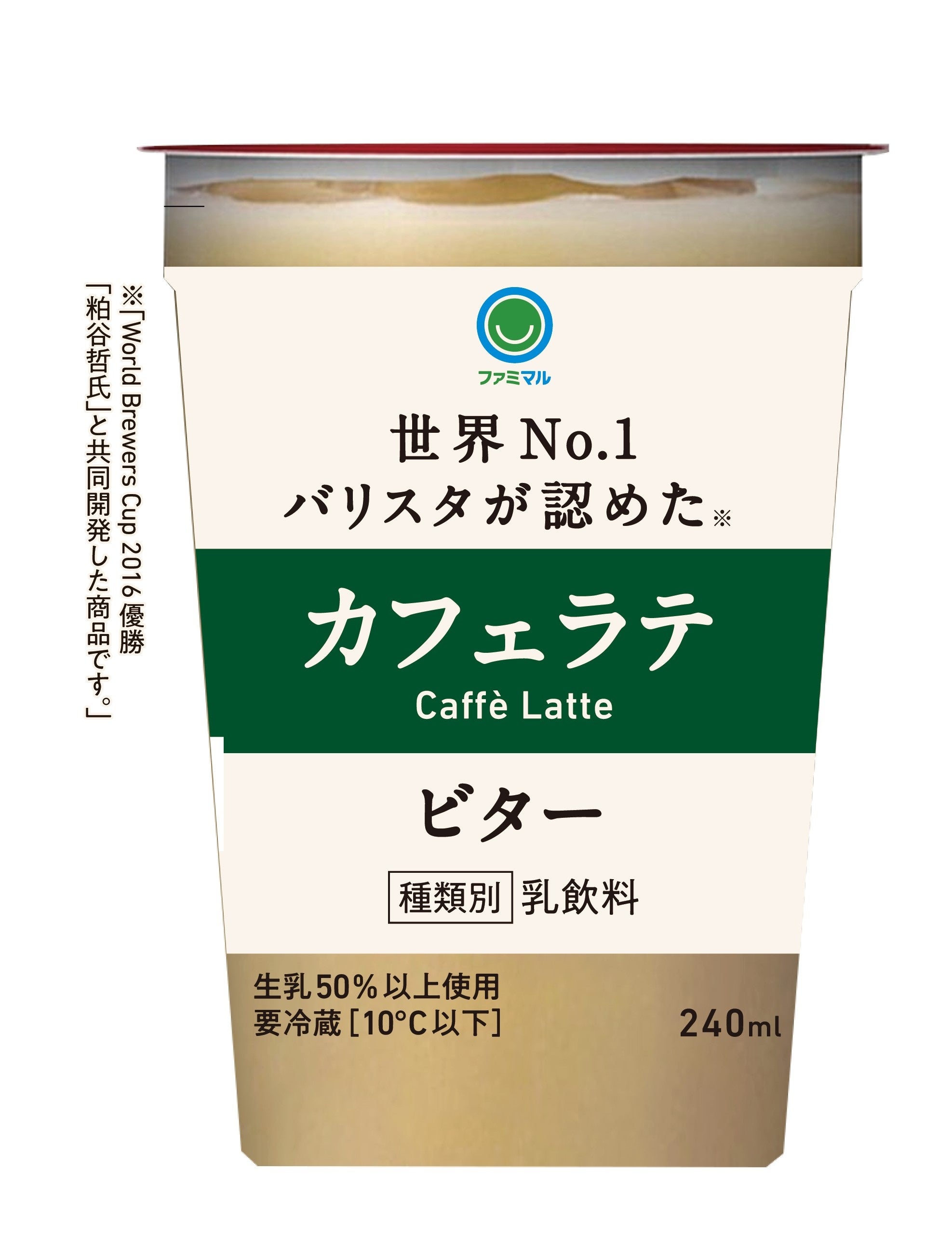 【内容】「世界チャンピオンのバリスタ」粕谷哲氏と共同開発した商品です。後味にコーヒーの心地よい苦味が残るように仕立てたカフェラテです。使用するコーヒー豆は「カフェラテ ビター」専用の割合でブレンドしました