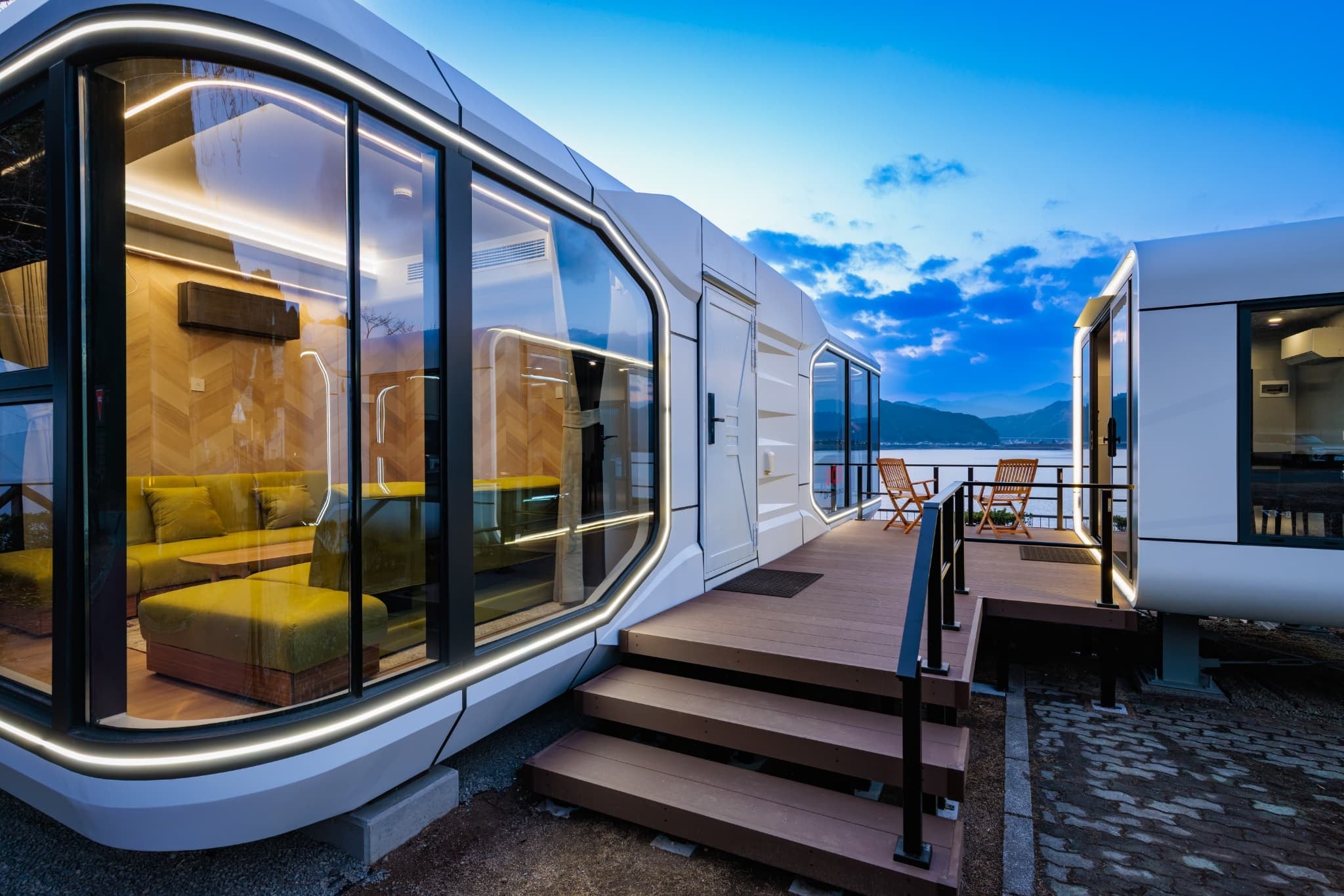 2棟限定で最新型のカプセルハウスを採用した、これまでにない新しい宿泊スタイル。