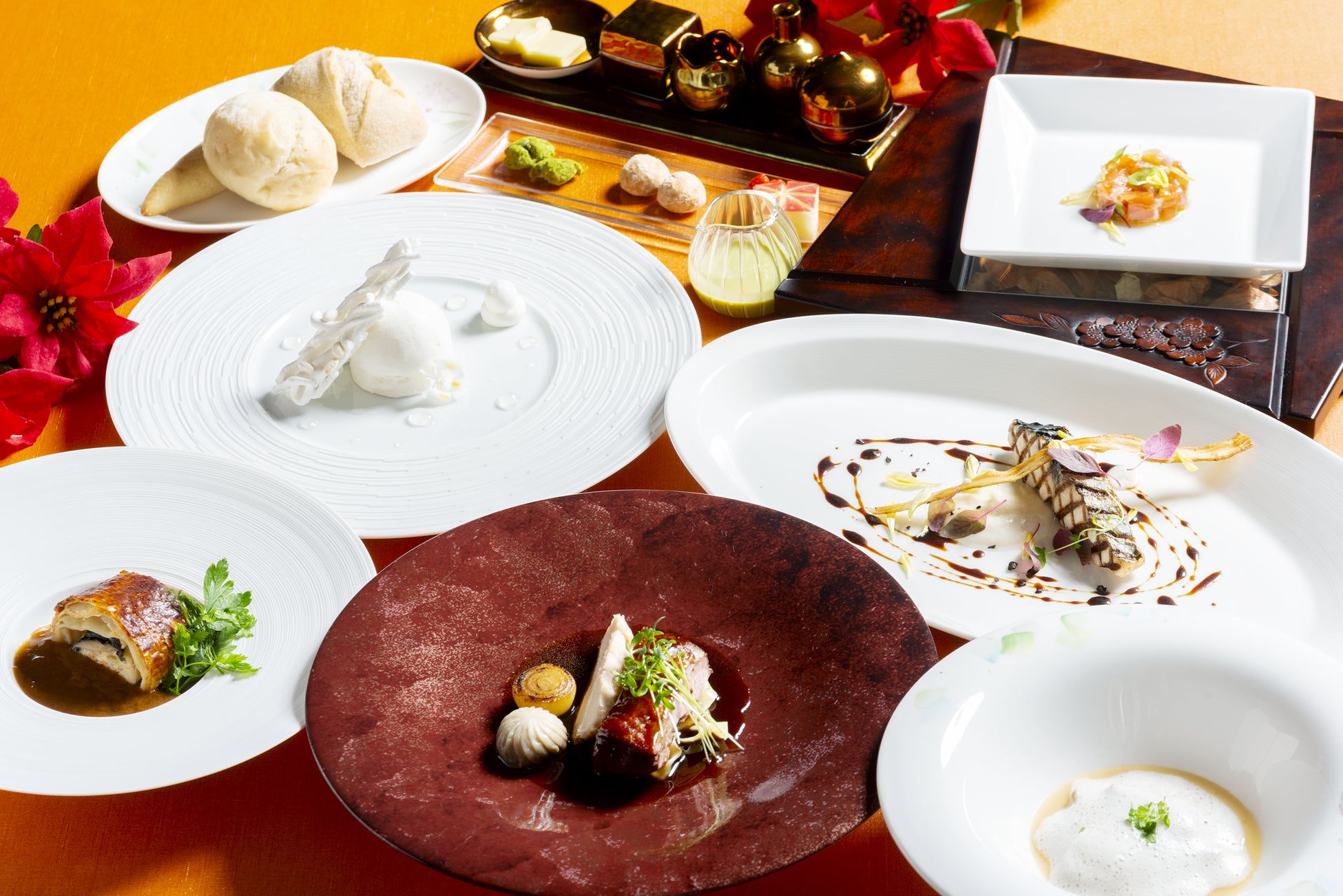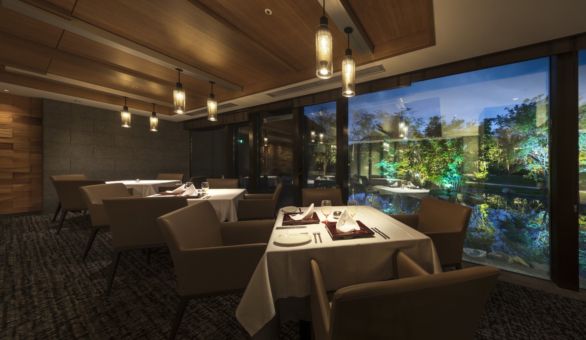 落ち着きと開放感を併せ持つ空間で愉しむ本格フレンチを、フルコースでご提供いたします。ライトアップされた中庭の景色とともに洗練された空間でのお食事をお愉しみいただけます。