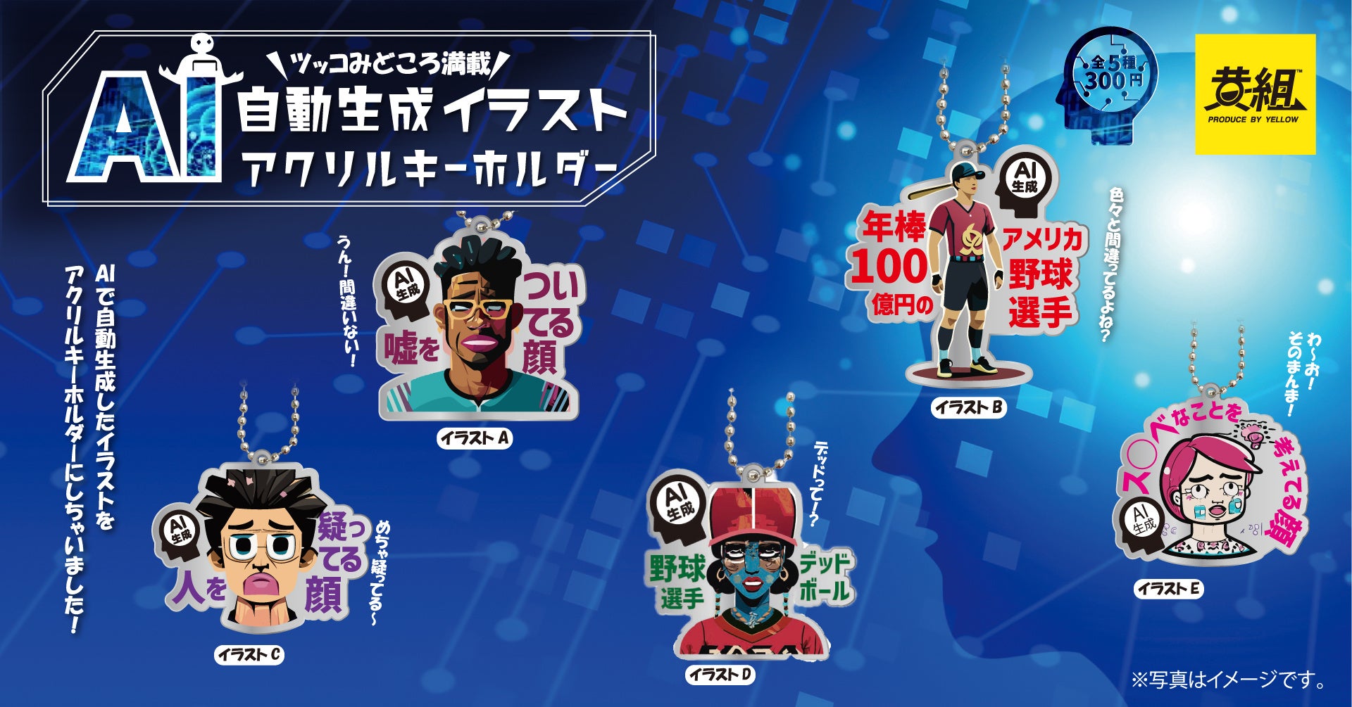 ファッション・アパレル雑貨を中心に企画・製造・販売など、国内外のブランドのOEM事業を手掛けるイエロー株式会社(本社:東京都渋谷区 代表取締役:阪崎英一郎、以下「当社」)は、「AI自動生成イラストアクリルキーホルダー」の発売を予告いたします