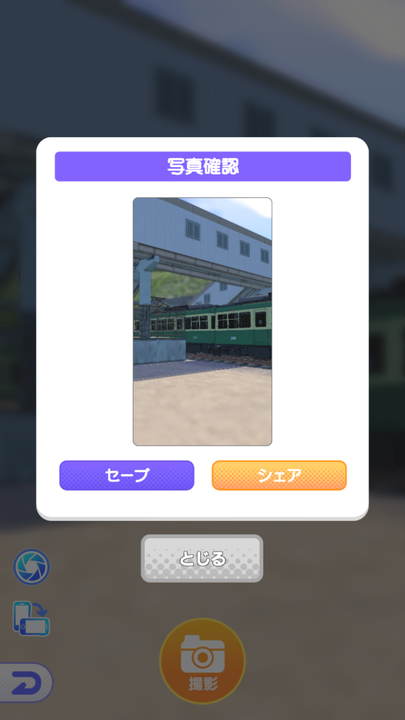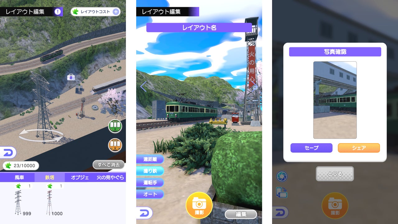 車窓からの風景や、レイアウト上に配置したカメラマンからの視点で車両を撮影し、SNS等に投稿することができます。