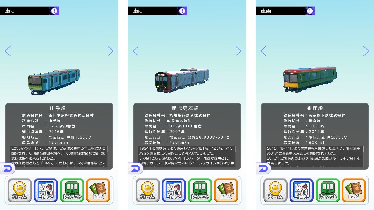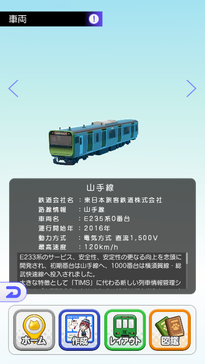 プラモモードで組み立てた車両は「図鑑」に登録されます。