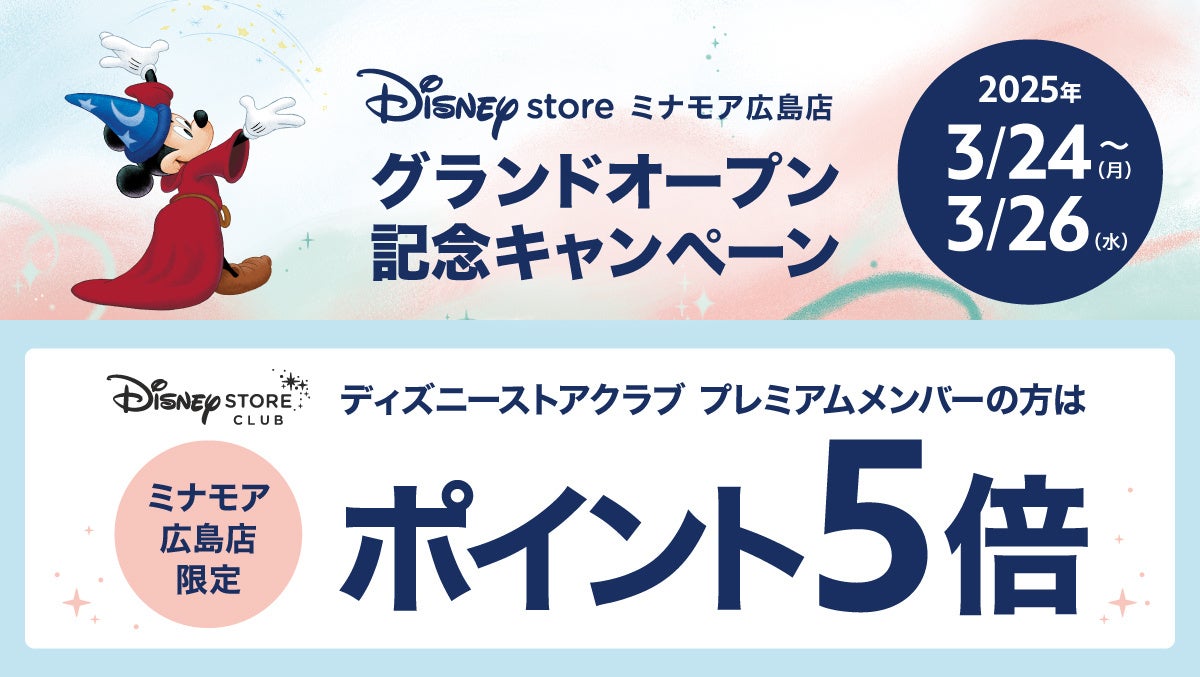 ウォルト・ディズニー・ジャパン株式会社(本社:東京都港区)は、広島県広島市内に開業する広島新駅ビル「ミナモア」内に、「ディズニーストア ミナモア広島店」を3月24日(月)にグランドオープンします。オープンを記念し、店舗限定アイテムの発売やプレゼントキャンペーンなどを実施します。
