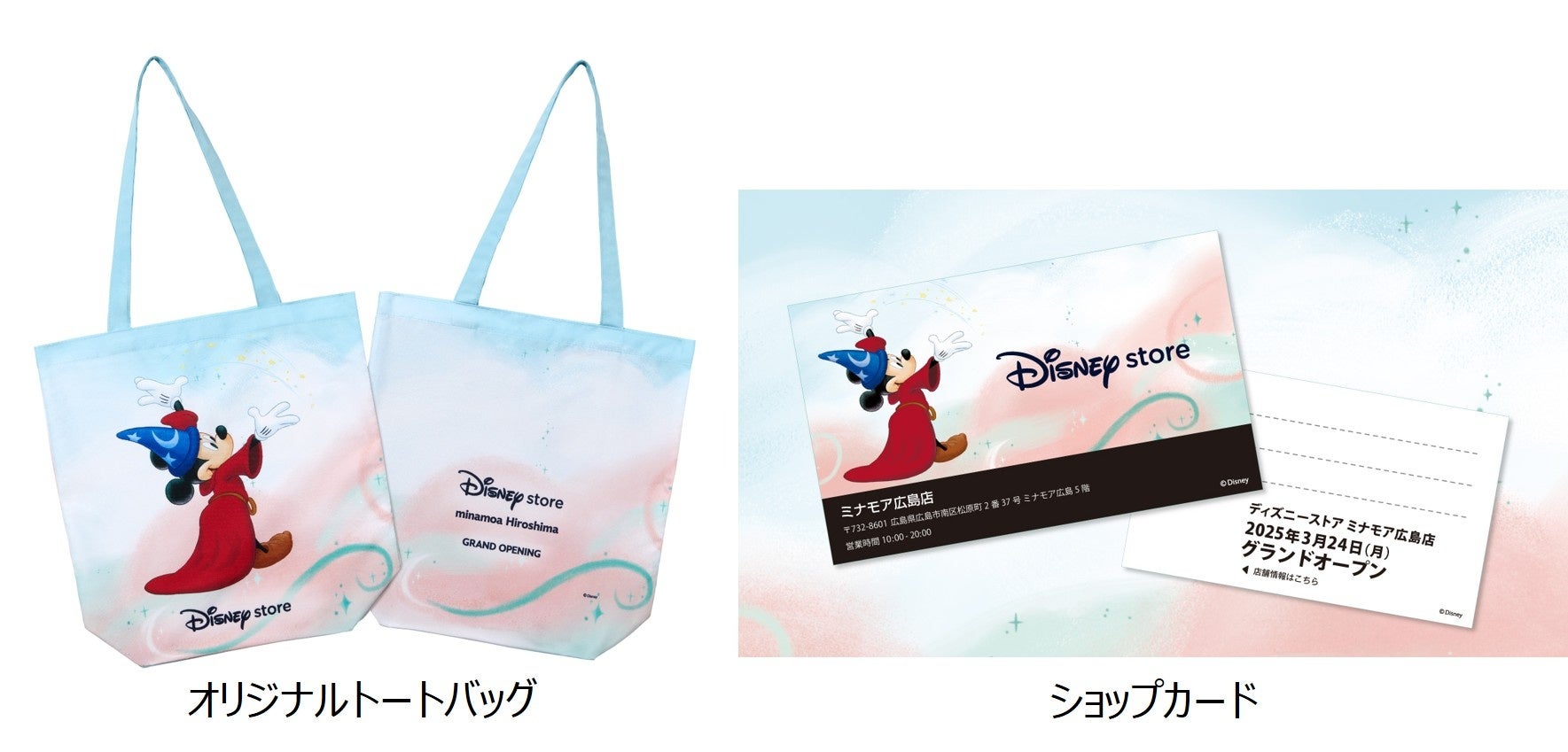 5,000円(税込)以上お買い上げでミナモア広島店限定デザインのオリジナルトートバッグをプレゼントします。さらに店内では、ご希望の方にミナモア広島店限定のショップカードをプレゼントします。詳しくはディズニーストアキャストにおたずねください。