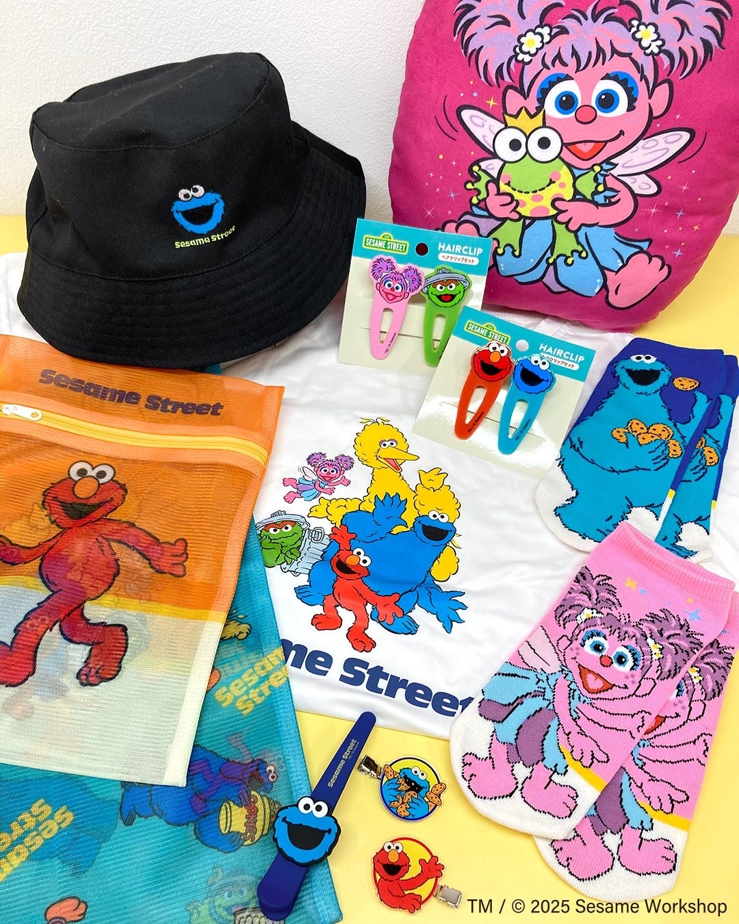 夏らしいクリア素材のアイテムも多く採用しており、「ヘアクリップ」など自宅で使えるアイテムはもちろん、さり気なく『セサミストリート』のキャラクターたちをアピールできる「バケットハット」などのファッションアイテムも登場します。