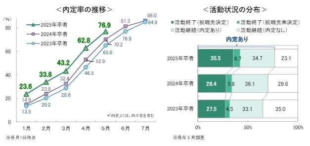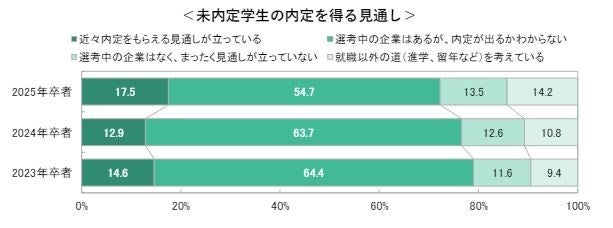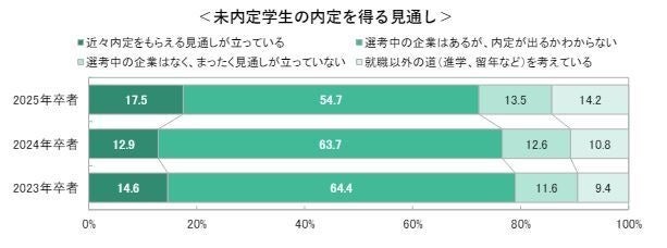 ○「内定獲得の見通しが立っている」17.5%。未内定者の大半はこれから