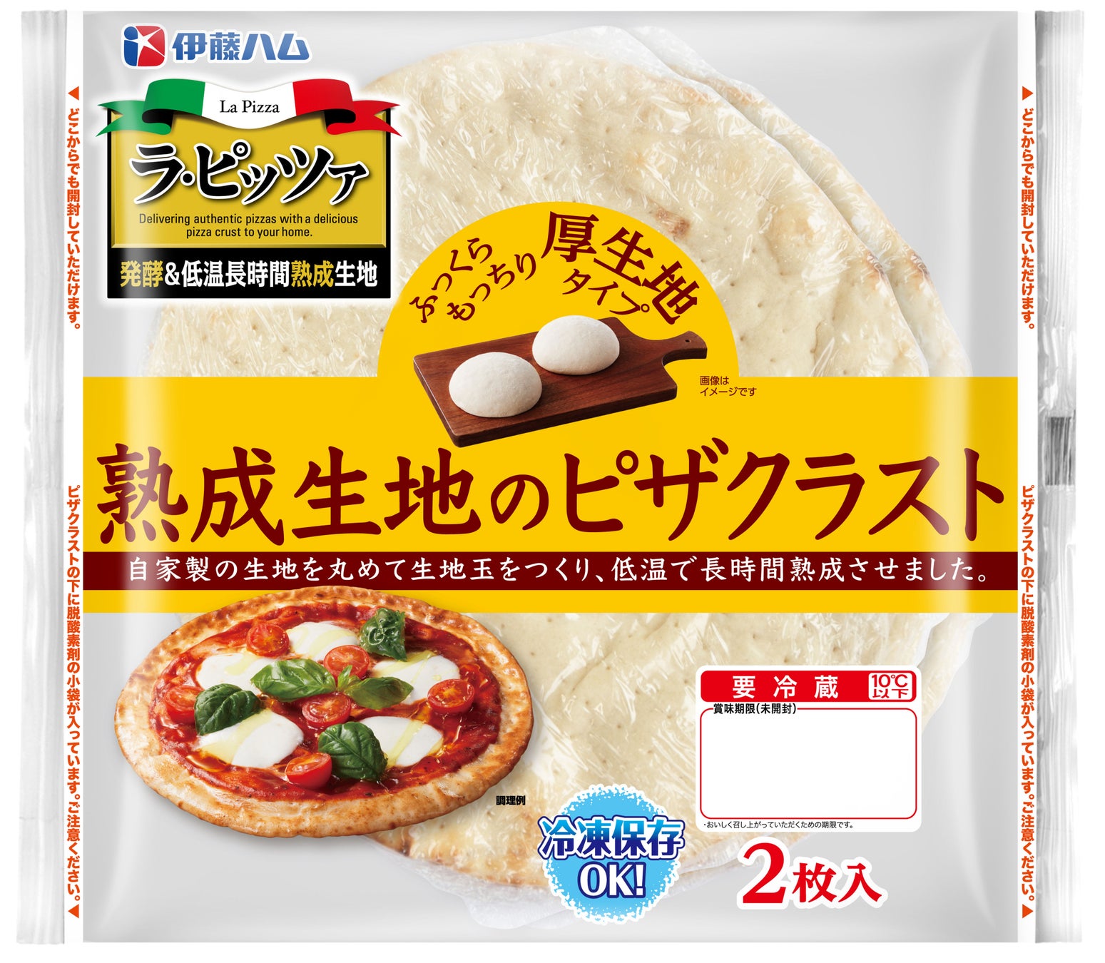 伊藤ハム株式会社は、低温長時間熟成の生地玉からつくった、ふっくらもっちり厚生地の「ラ・ピッツァ」シリーズから、ご家庭で手軽にアレンジピザを楽しめる「熟成生地のピザクラスト」を発売します。新たに発酵工程を加え、さらにふっくらもっちりとした食感になった「ラ・ピッツァ」のおいしさを手軽にお楽しみいただけます。