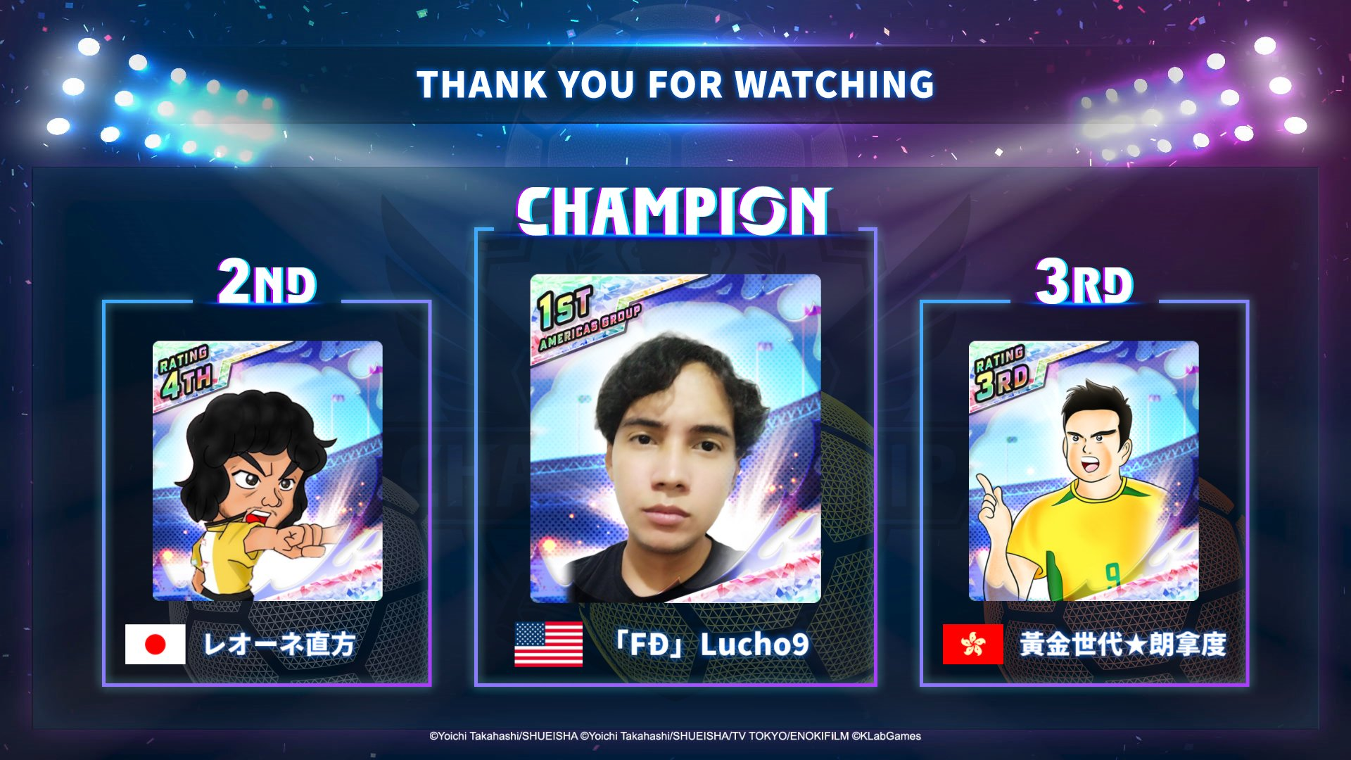 KLab株式会社(本社:東京都港区、代表取締役社長:森田英克、以下「KLab」)が提供するスマートフォン向け対戦型サッカーシミュレーションゲーム『キャプテン翼 ~たたかえドリームチーム~』は、世界大会「Dream Championship 2022」の決勝トーナメントを2022年12月10日(土)・11日(日)に開催し、全世界のプレイヤーの中から、アメリカの「FĐ」Lucho9選手が優勝したことをお知らせします。