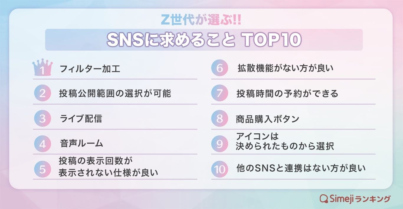 【Simejiランキング】Z世代が選ぶ!!「SNSに求めることTOP10」