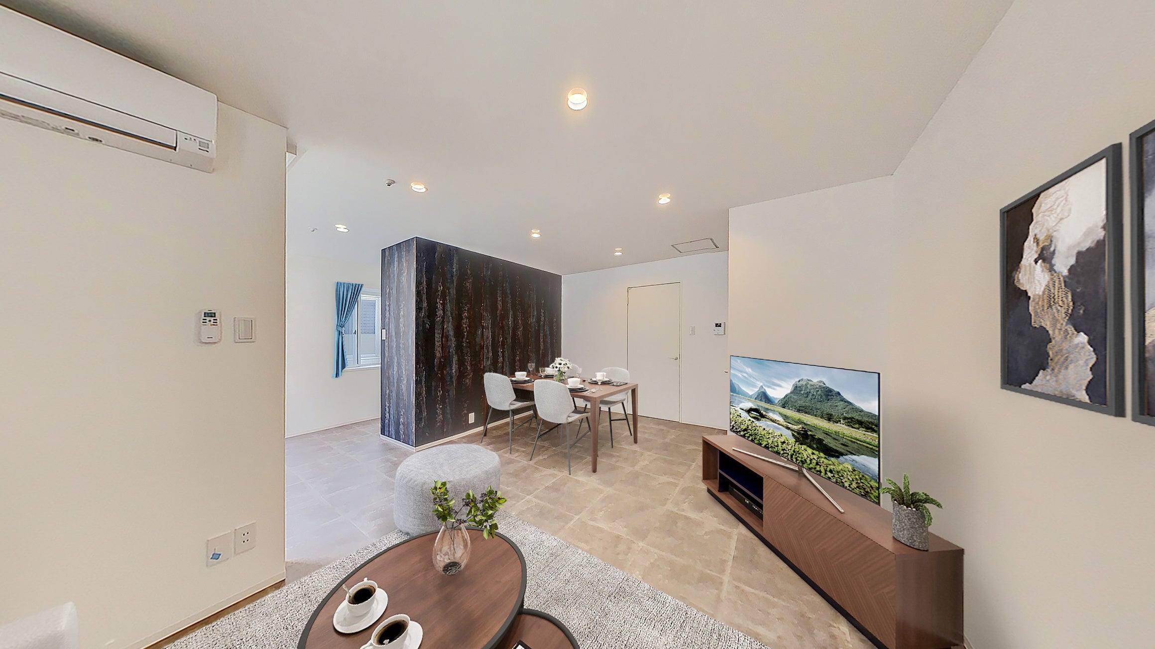 「住まいに生活感をなるべく出したくない」「好きなインテリアや家具だけに囲まれて気持ちよく過ごしたい」。という方のために、モノトーンで統一した住まいをつくりました。でも個性も大事にしたいので、トーンはそのままに錆びついたような独特の柄をプラスして空間に深みを与えています。何にも染まらないニュートラルな色調はインテリアの幅も無限大。自分らしい住まいを創り上げてください。