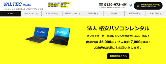「バルテックレンタル」はPBパソコンを製造販売するバルテックグループで、リースレンタル事業を行う株式会社バルテックネットワークスが運営する法人パソコンのレンタルサイトです。パソコン1台から、見積最短15分、即日発送で全国対応が可能です。