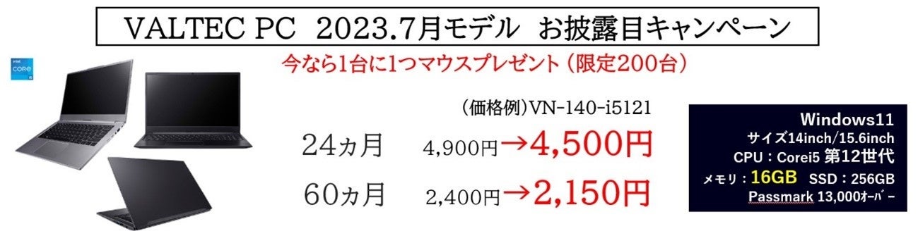 法人専用ノートパソコン「VALTEC Notebook PC」シリーズより新製品がリリースされたことを記念して、該当モデルを今だけの特別価格でご利用いただけるキャンペーンを開催します。