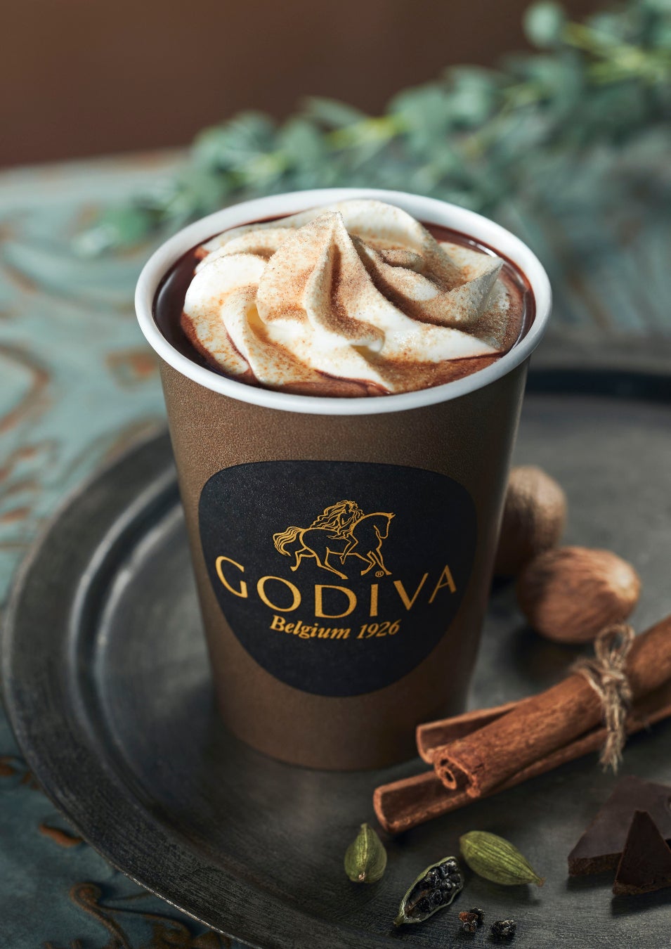 Godivaのダークチョコレートにスパイスチャイパウダーを使用したホットショコリキサー。