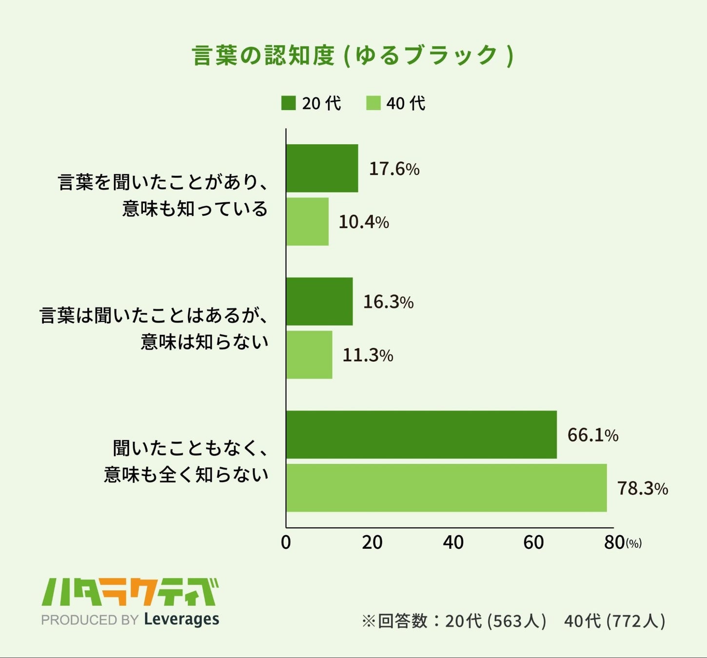長時間労働が問題視され、政府による働き方改革への取り組みが実施されるなか、若手社員の離職原因として話題となっているのが「ゆるブラック企業」です。この「ゆるブラック」について聞いたところ、「言葉を聞いたことがあり、意味も知っている」と回答したのは20代で17.6%、40代では10.4%と約1割程度にとどまりました。