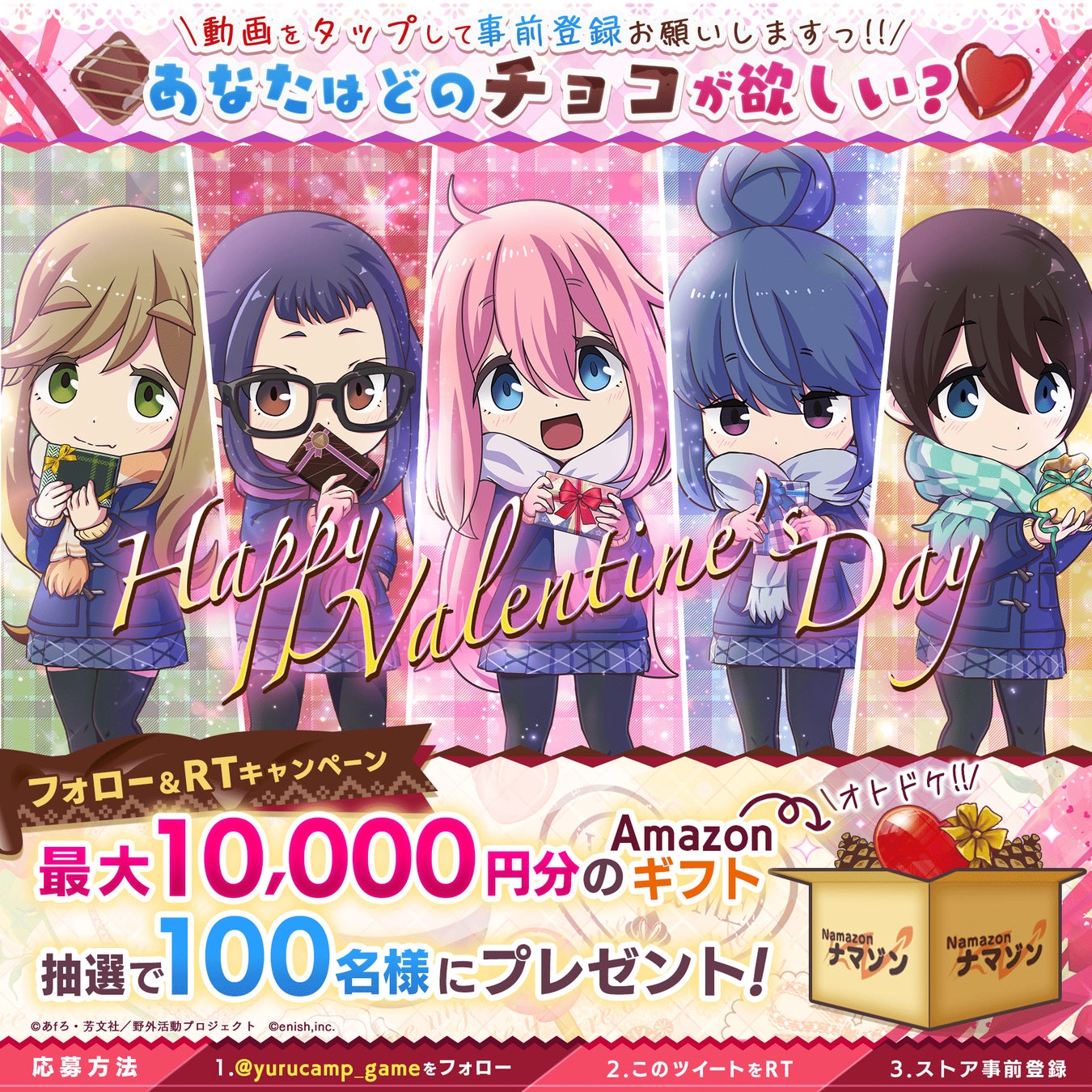 株式会社enish(本社:東京都港区、代表取締役社長:安徳 孝平、以下enish)は、2023年2月10日(金)に、TVアニメ『ゆるキャン△』初となるスマートフォン専用ゲーム「ゆるキャン△ つなげるみんなのオールインワン!!」の事前登録者数が30万人を突破したことをお知らせいたします。また、撮りおろしボイスが楽しめるバレンタイン動画公開記念RTキャンペーンやゲームオリジナルグッズが当たるストア予約キャンペーンも絶賛実施中です。