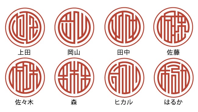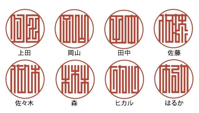 ユニークで個性的なものや、他の人とは違うハンコをお探しの方にぴったり。漢字はもちろん、ひらがな・カタカナ・アルファベットのお名前にも対応しています。たとえ画数の少ないシンプルなお名前でも、専属のデザイナーがタイポグラフィーの要素をとりいれた唯一無二のスタイリッシュなデザインに制作します。