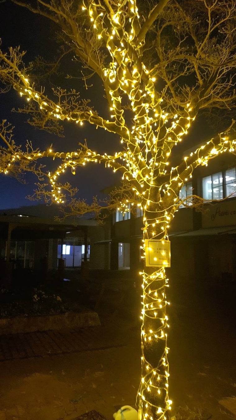 今年度は電飾を一本の木に集中して飾りました。とても明るいものができあがったので、見てくださった人にも綺麗と思ってもらえたのではないでしょうか。千葉大のクリスマスシーズンを少しでも華やかにできたのなら嬉しいです。